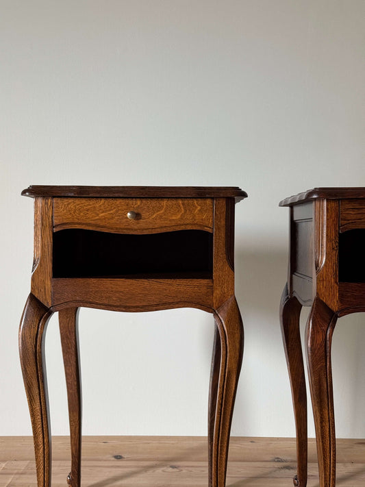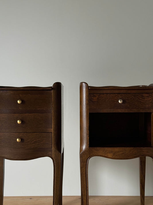 Pair of dark oak French vintage bedside tables