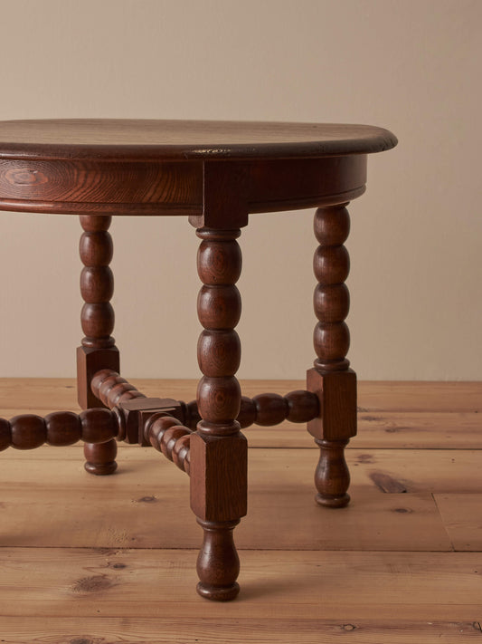 French vintage circular oak bobbin table