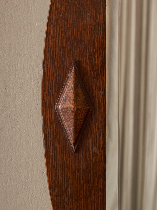 Antique circular oak bevelled mirror