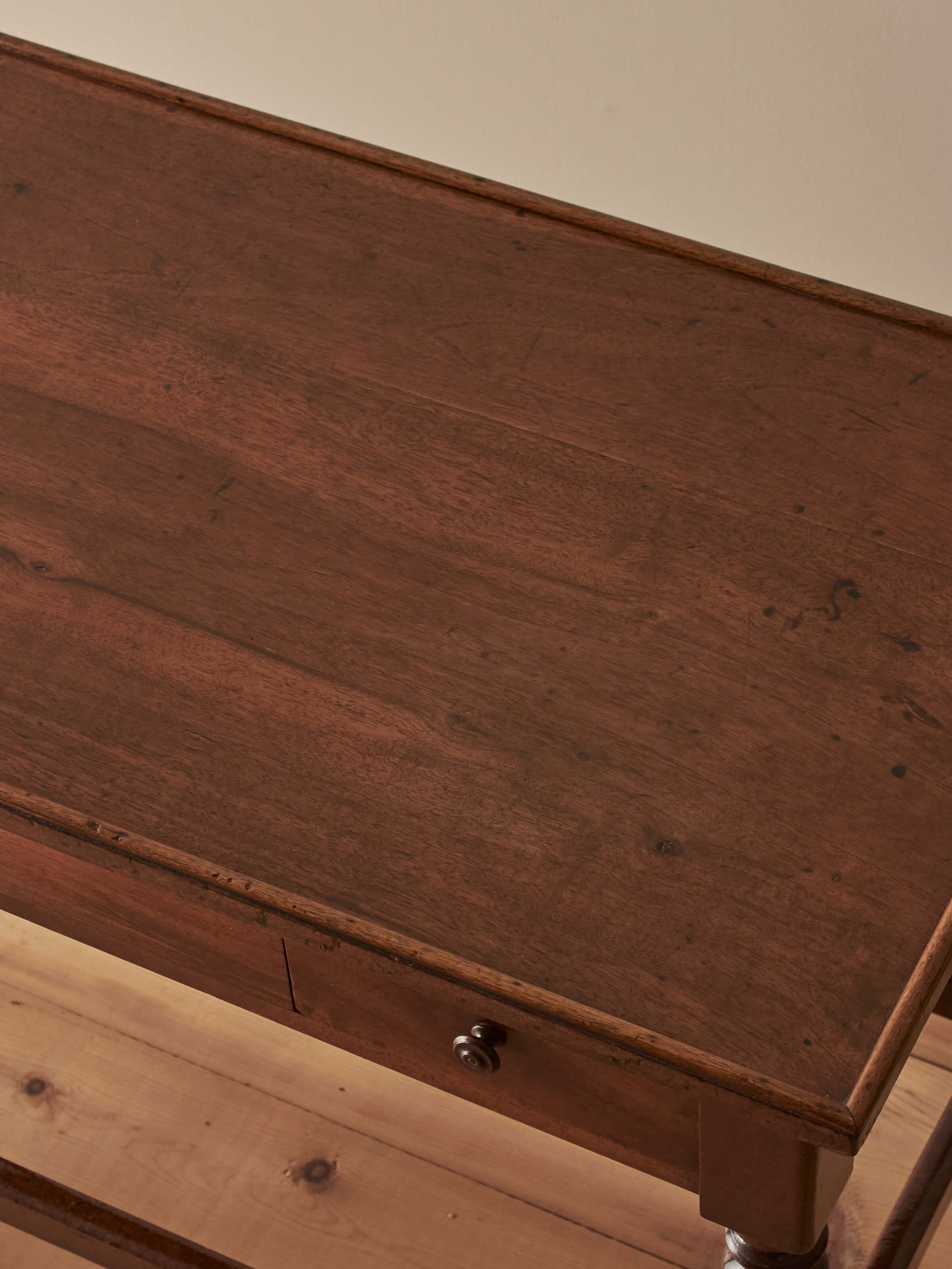 A charming antique French walnut and mahogany side table. Estimated to be late 1800s.