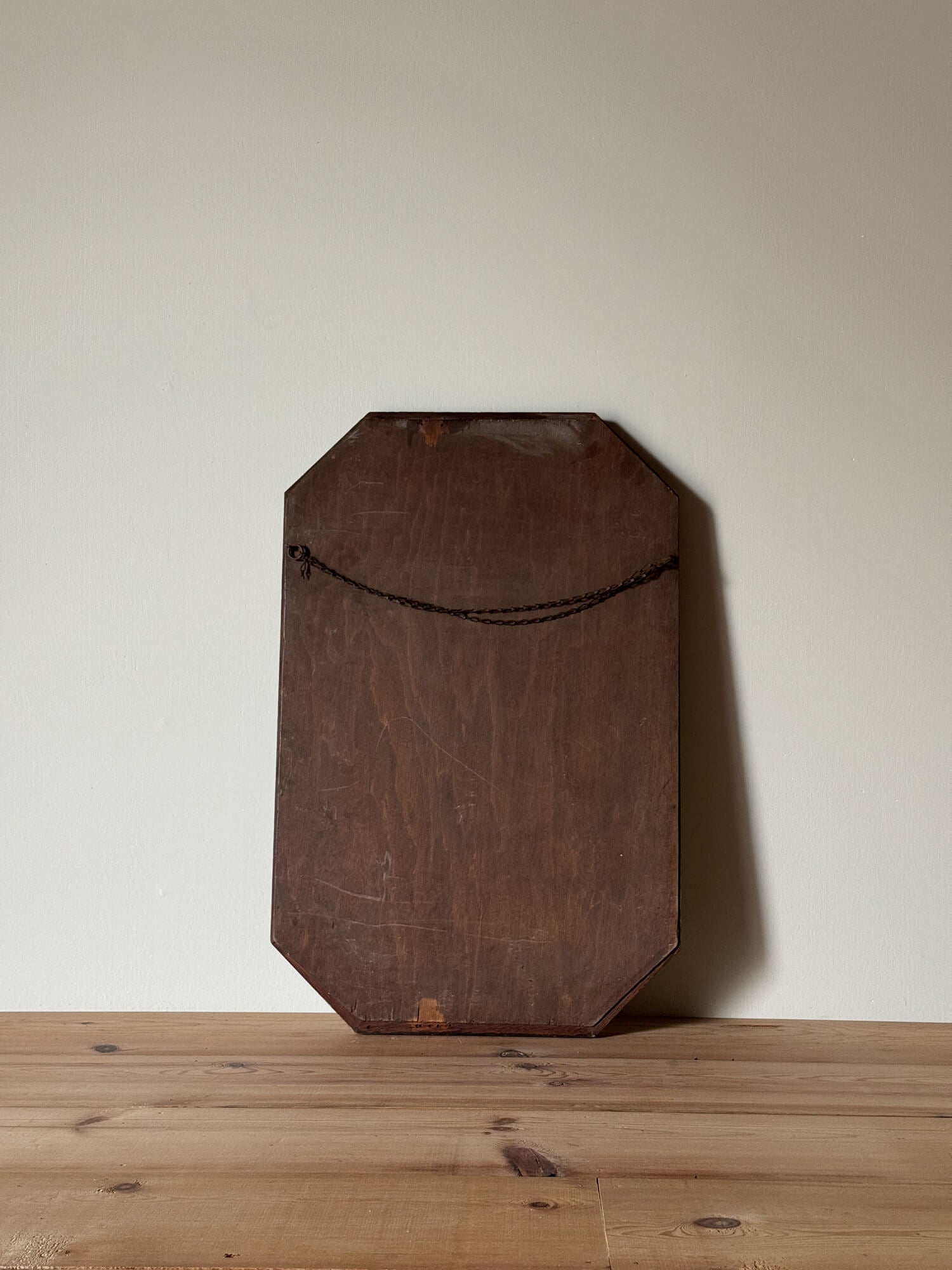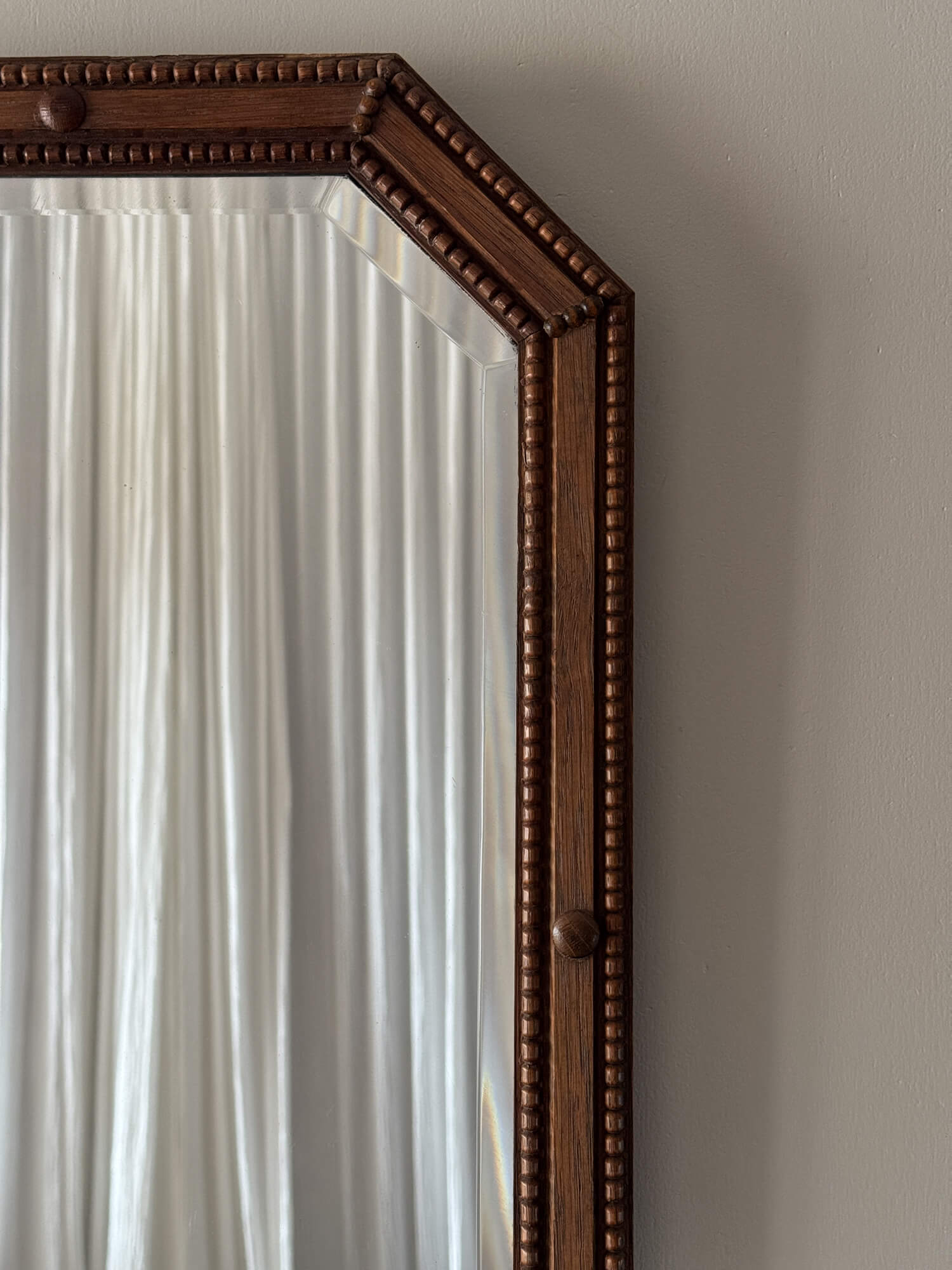 An elegant antique oak octagonal mirror. Estimated to be early-mid 1900s.
