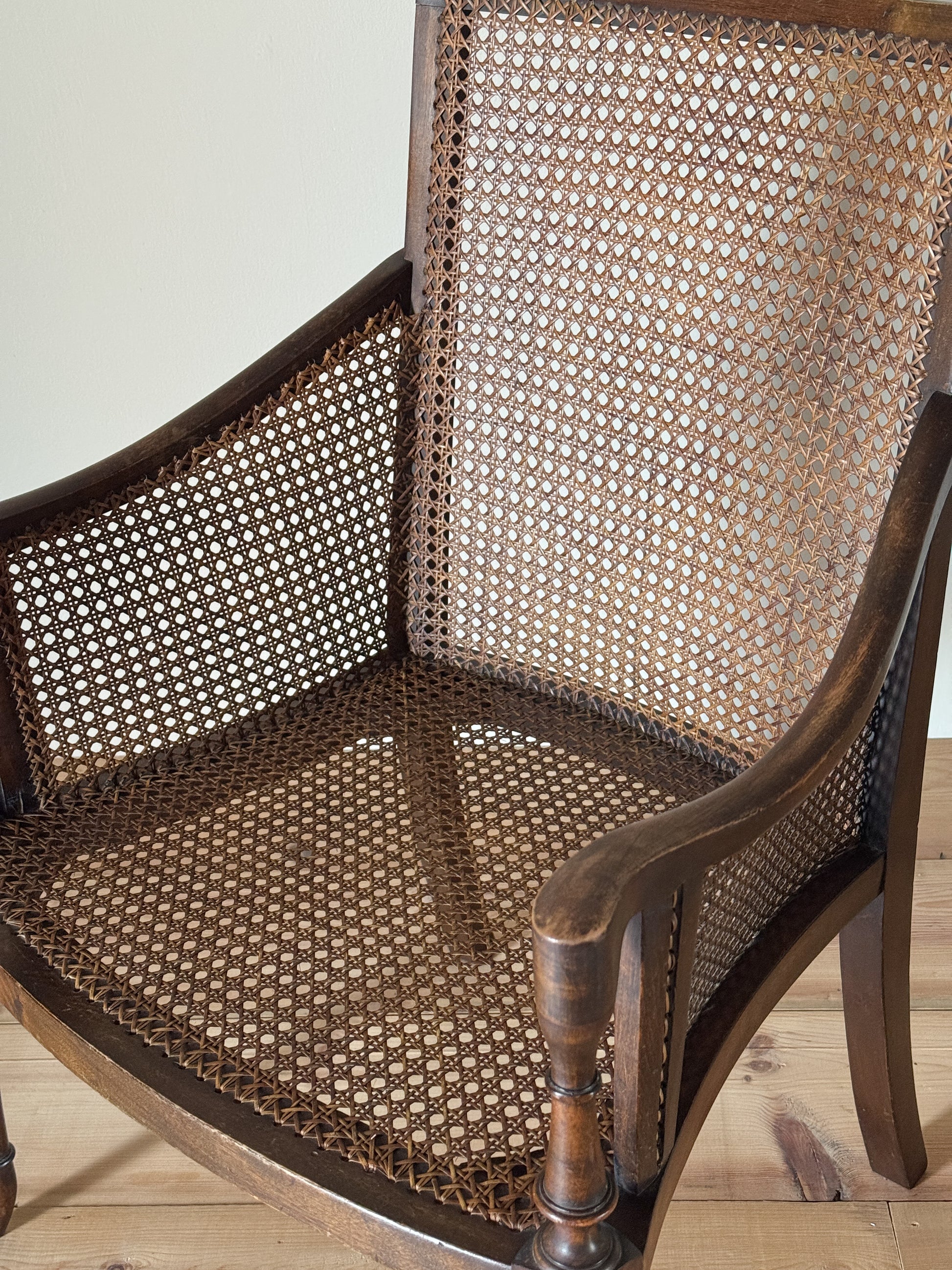 An elegant Edwardian cane bergère armchair. Estimated to be early 1900s.