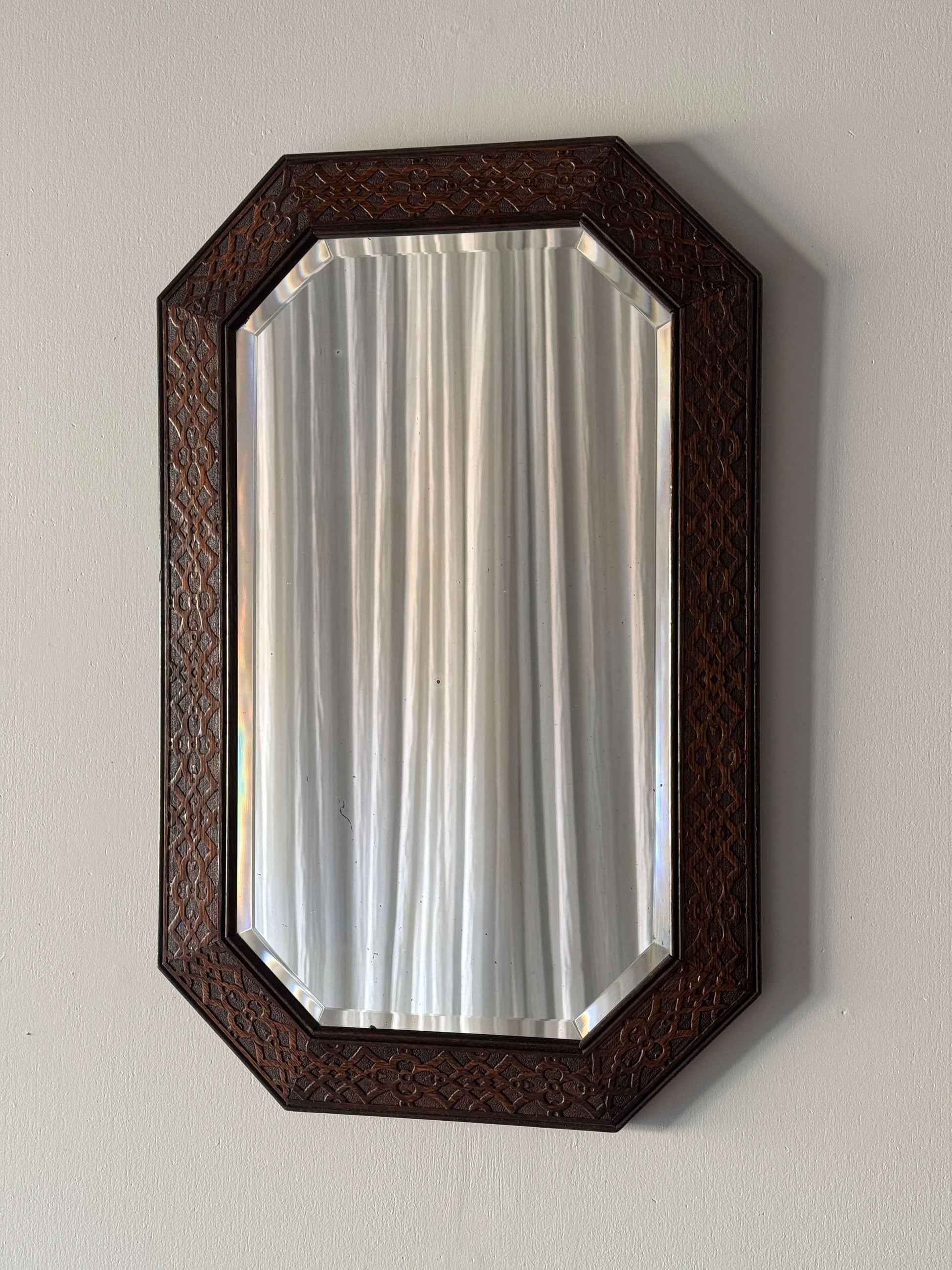 A beautiful Edwardian oak-carved mirror. Estimated to be early 20th century.