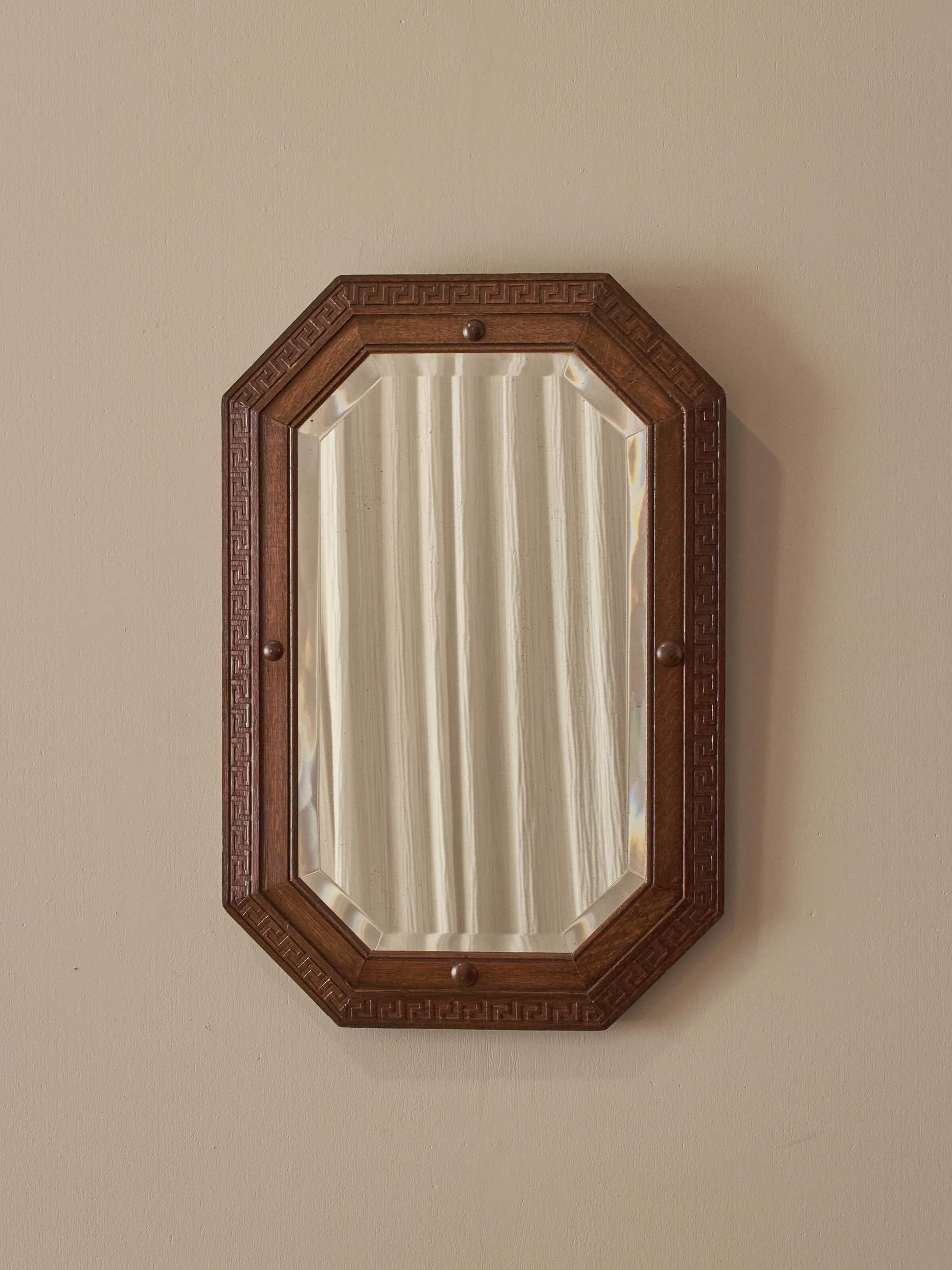 A wonderful Edwardian oak octagonal bevelled mirror. Estimated to be early 1900s.