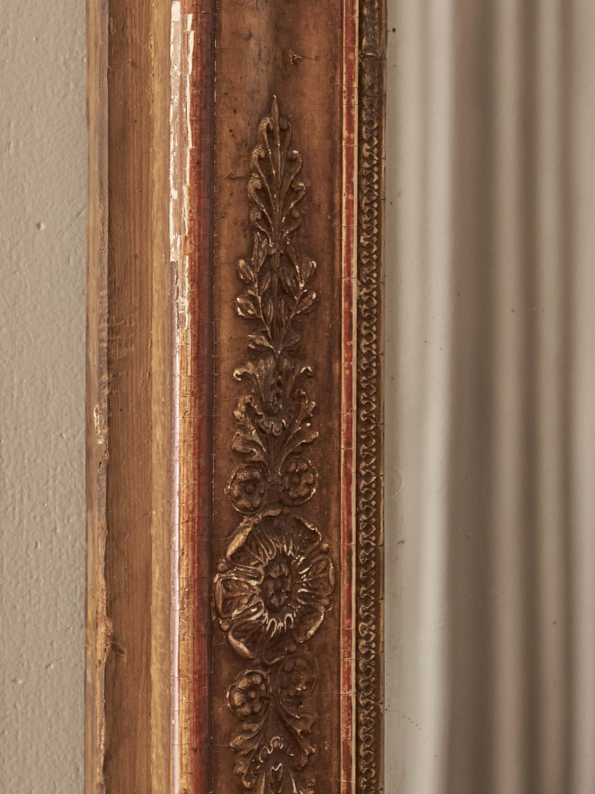 A lovely French antique gilt mirror with floral motifs. Estimated to be mid 1800s.