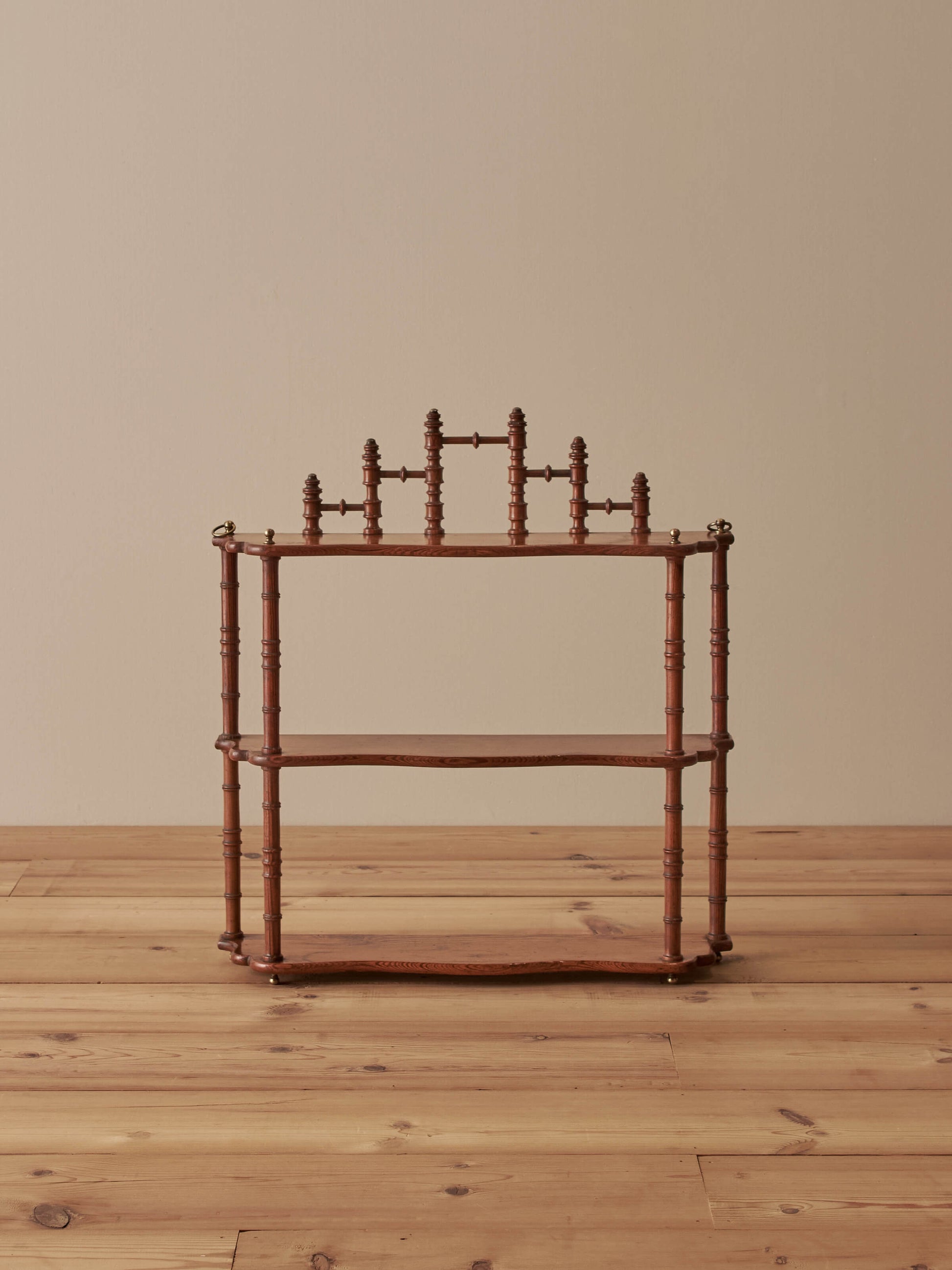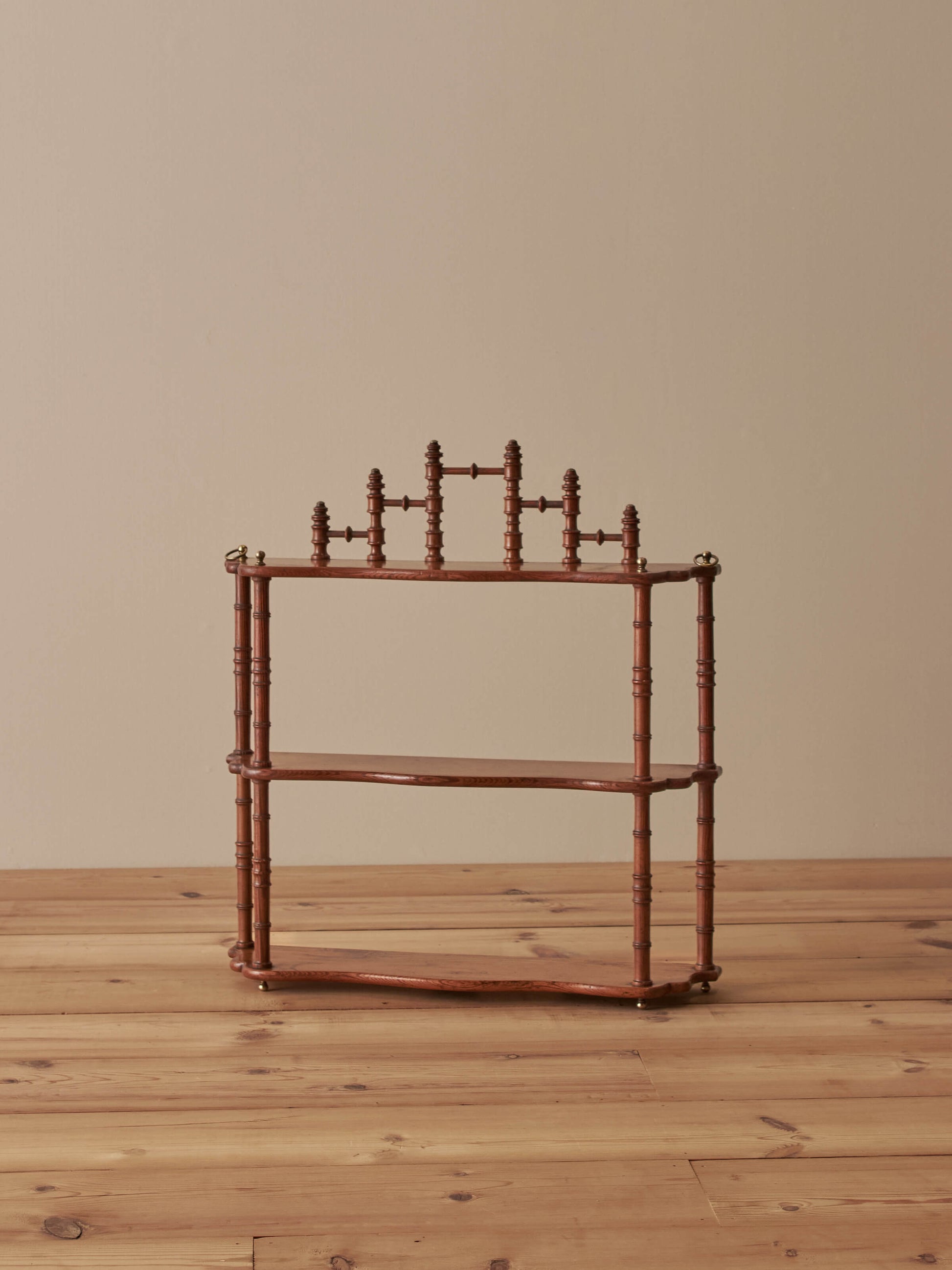 An elegant French pine faux bamboo wall shelf. Estimated to be early 1900s.