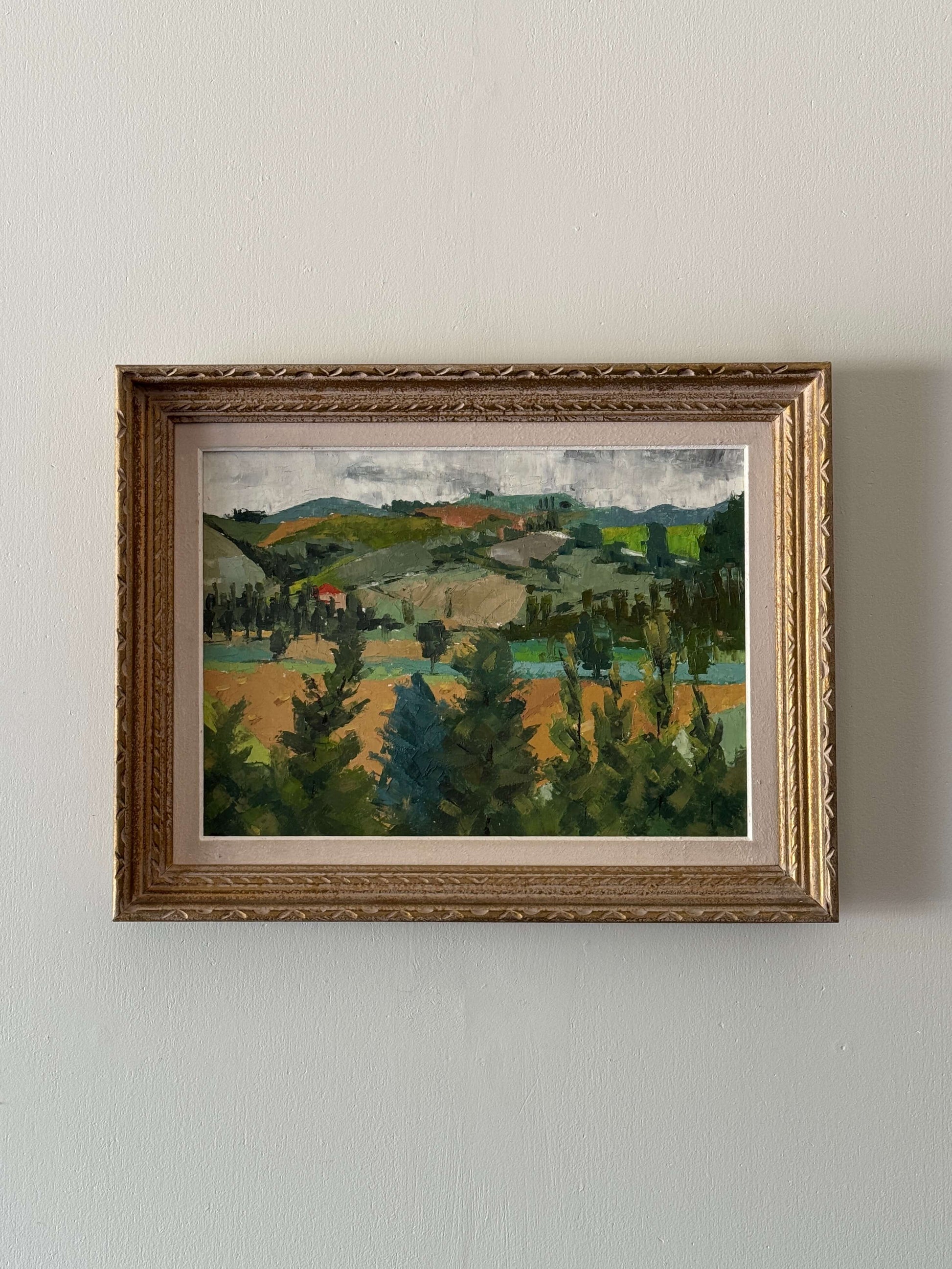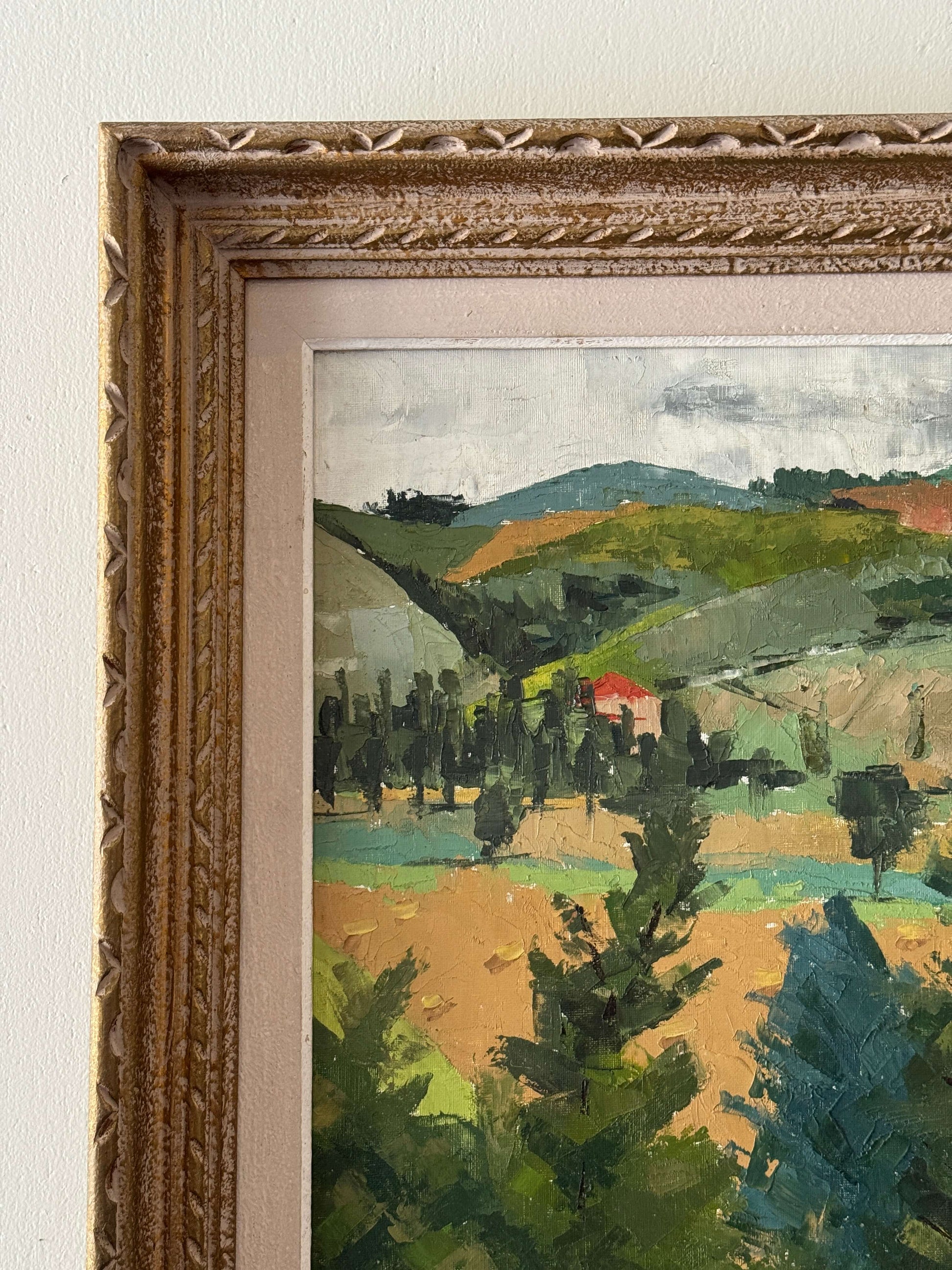 A French vintage hillside oil painting. Estimated to be mid-century.