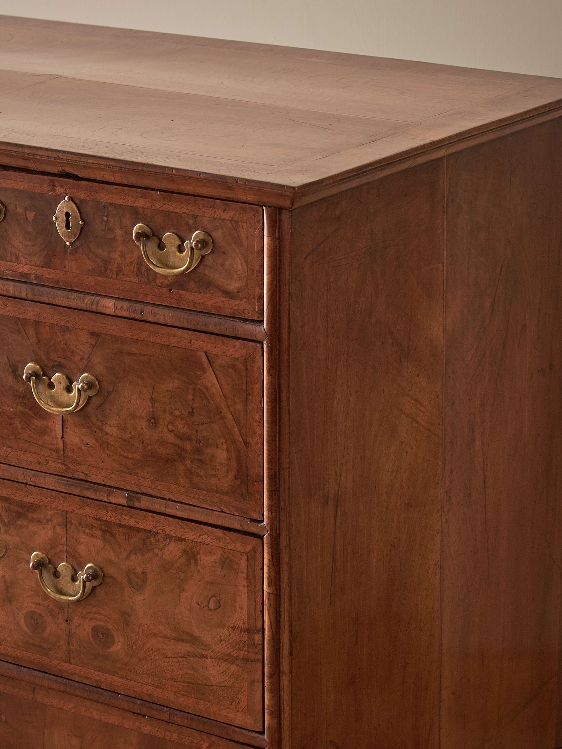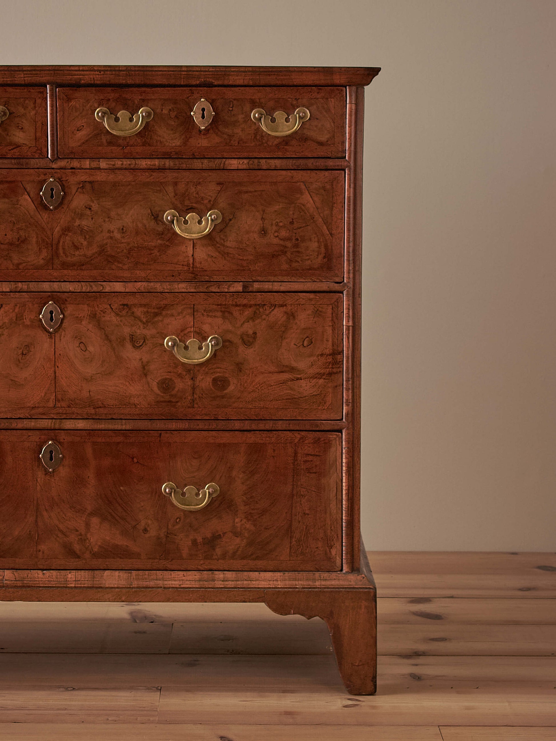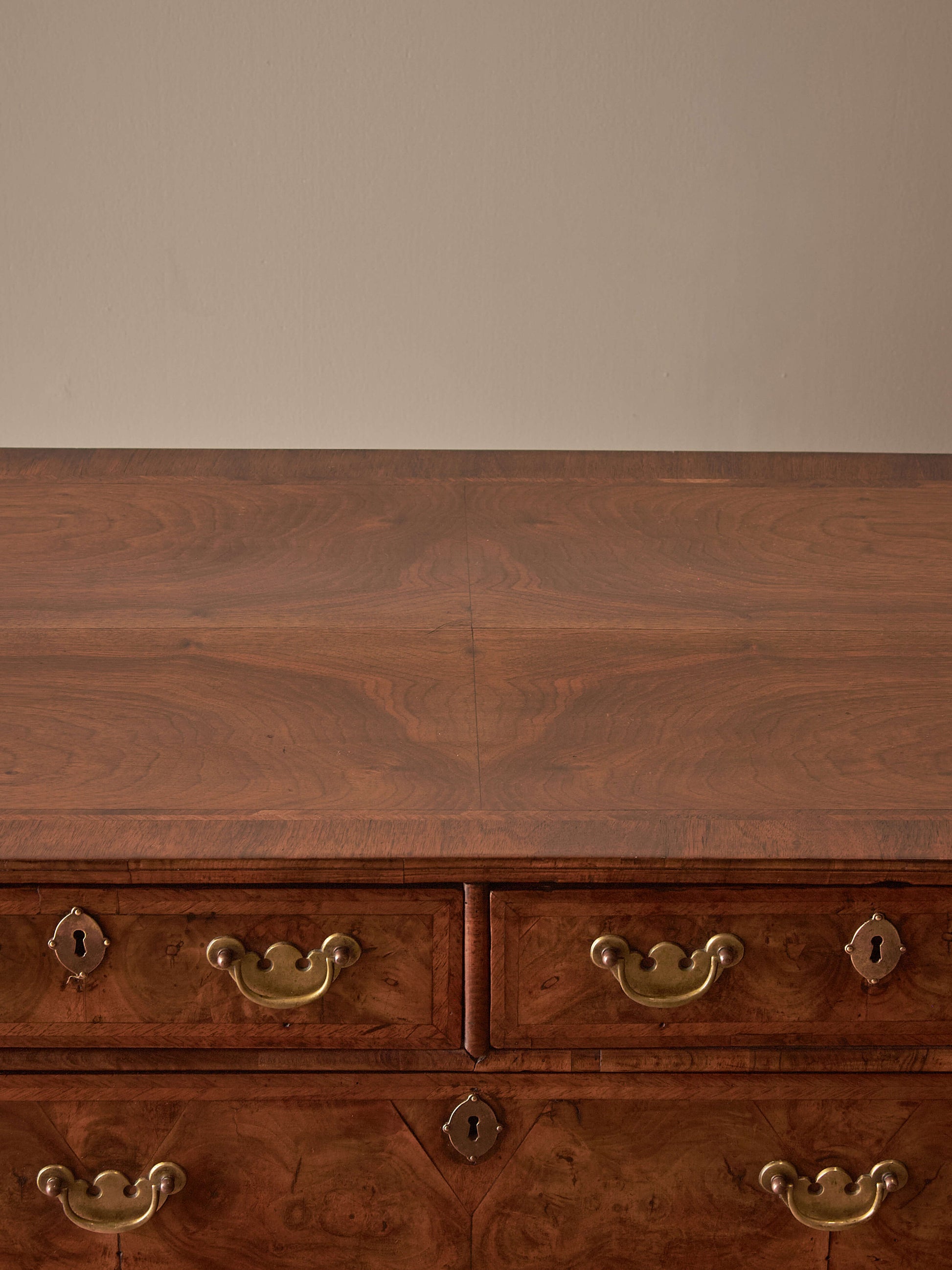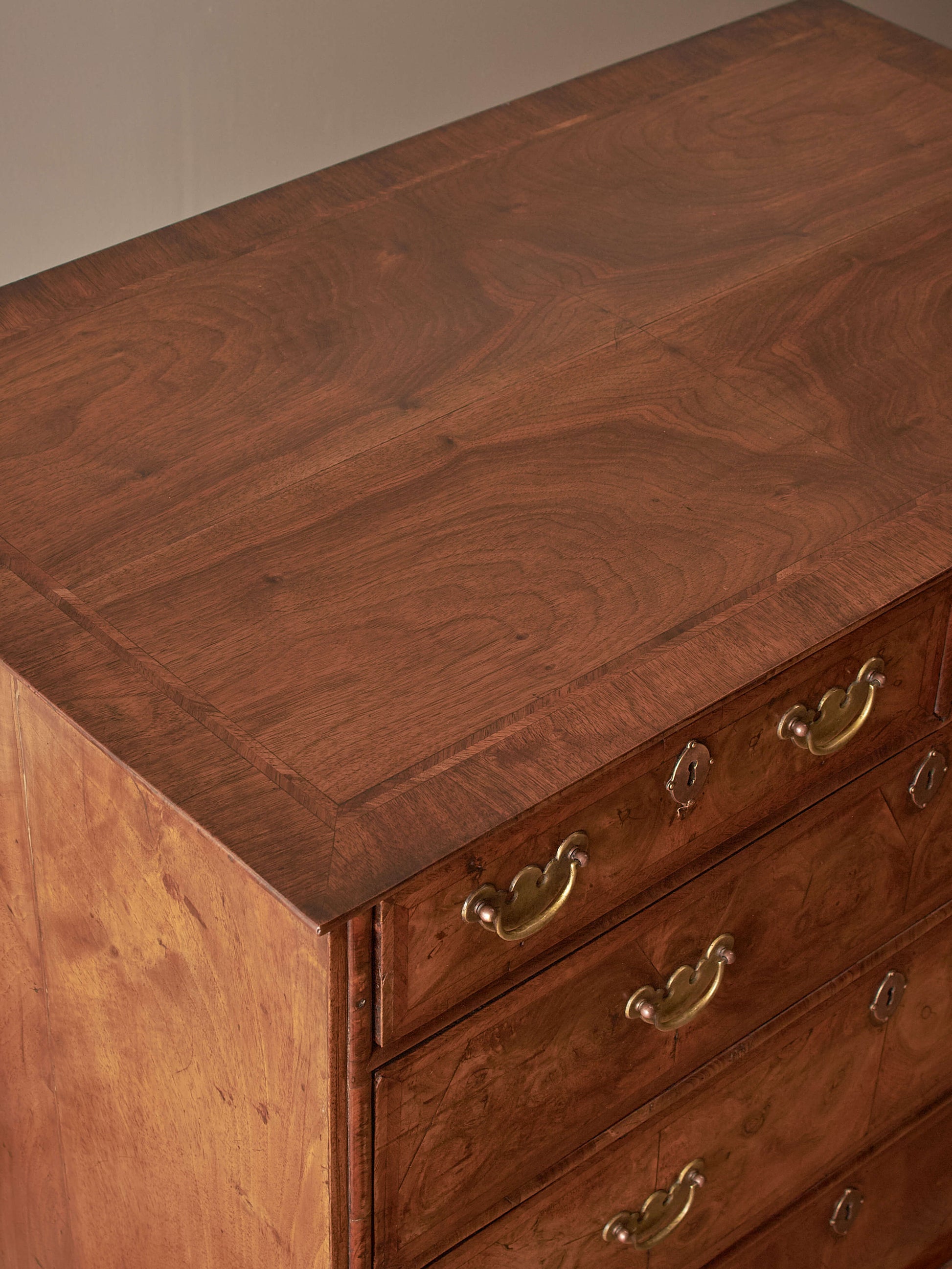 A fabulous George I figured walnut chest of drawers. Estimated to be early 1700s.