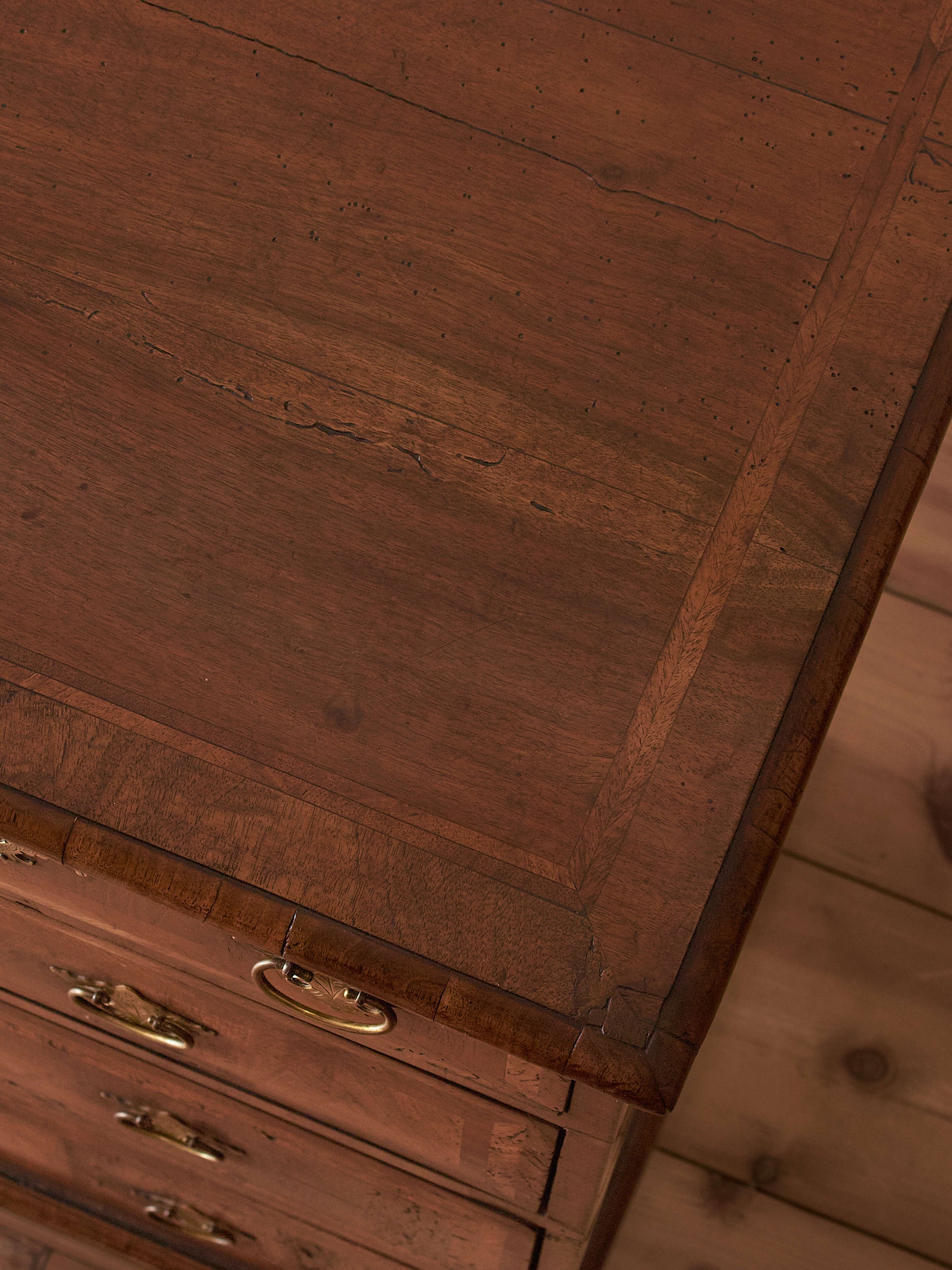 A beautiful George I walnut cross-banded chest of drawers. Estimated to be early 1700s.