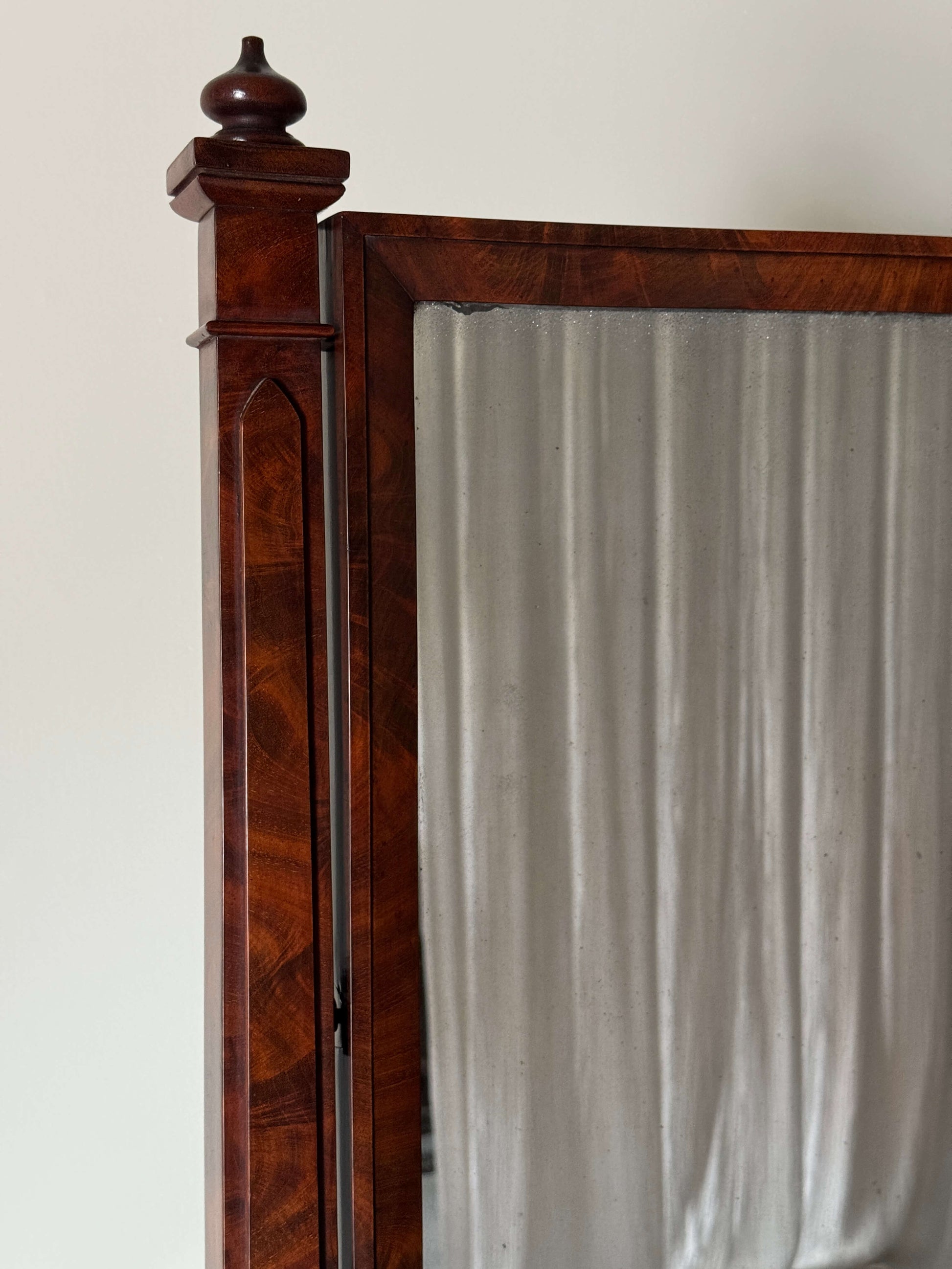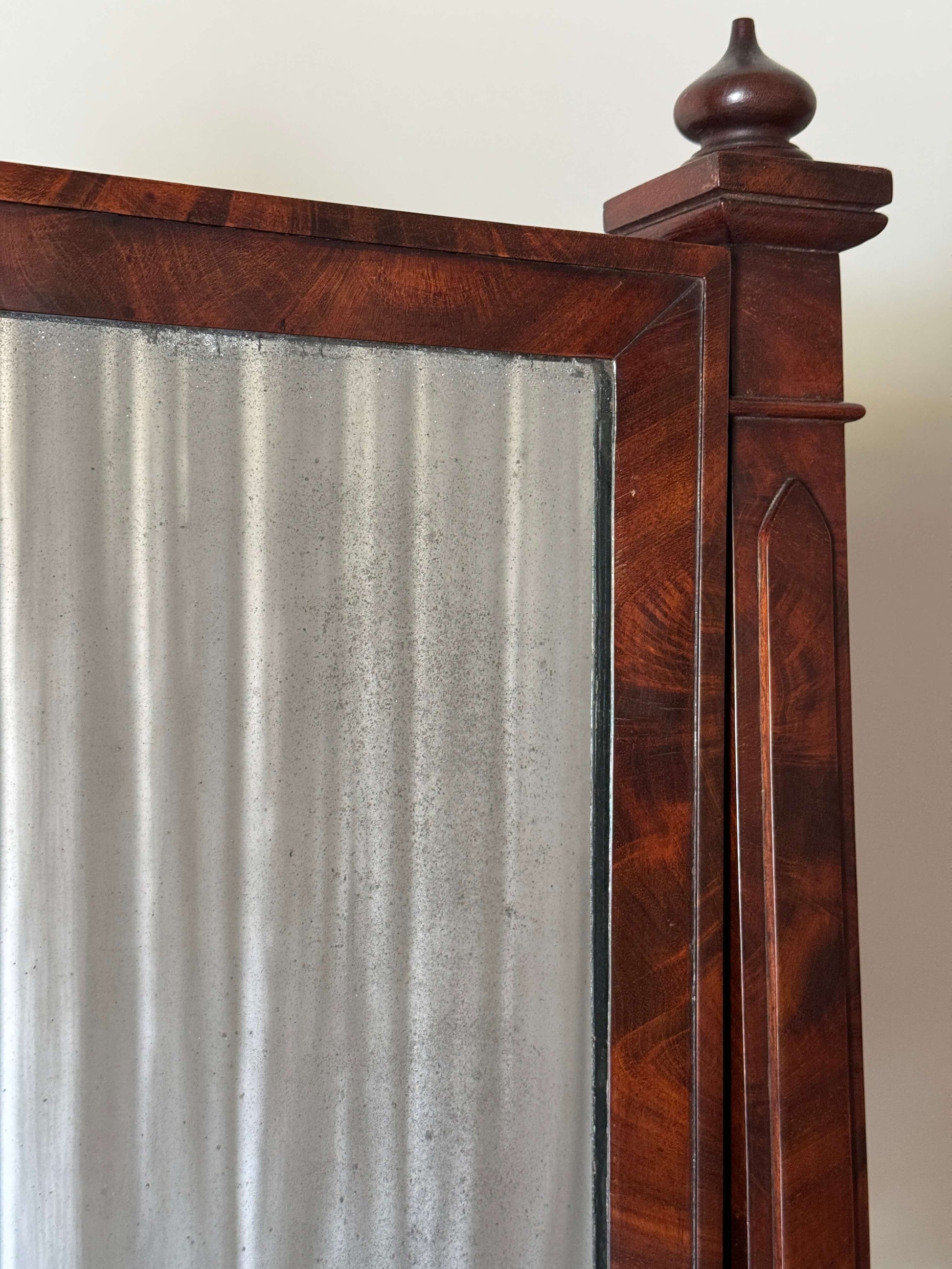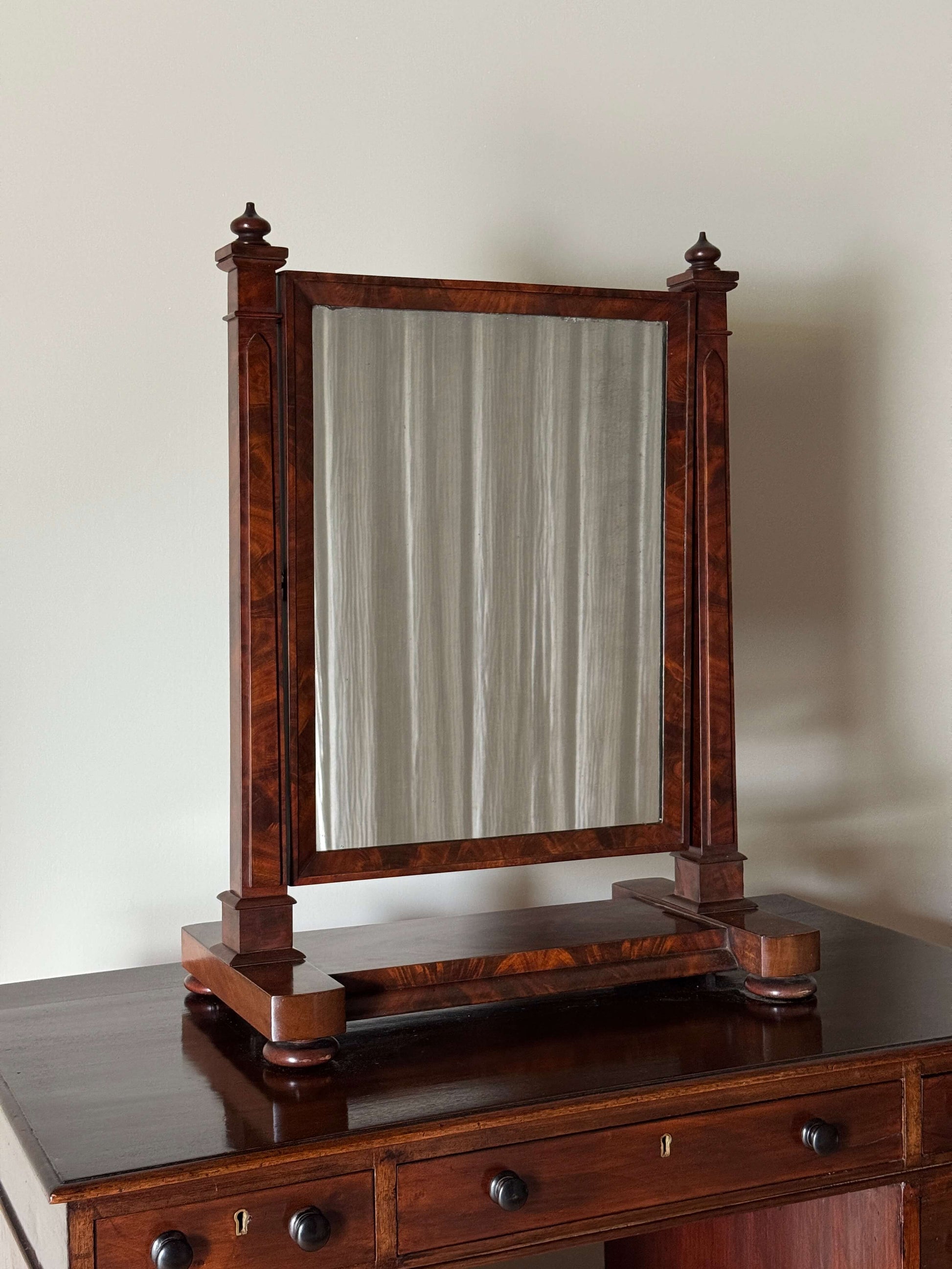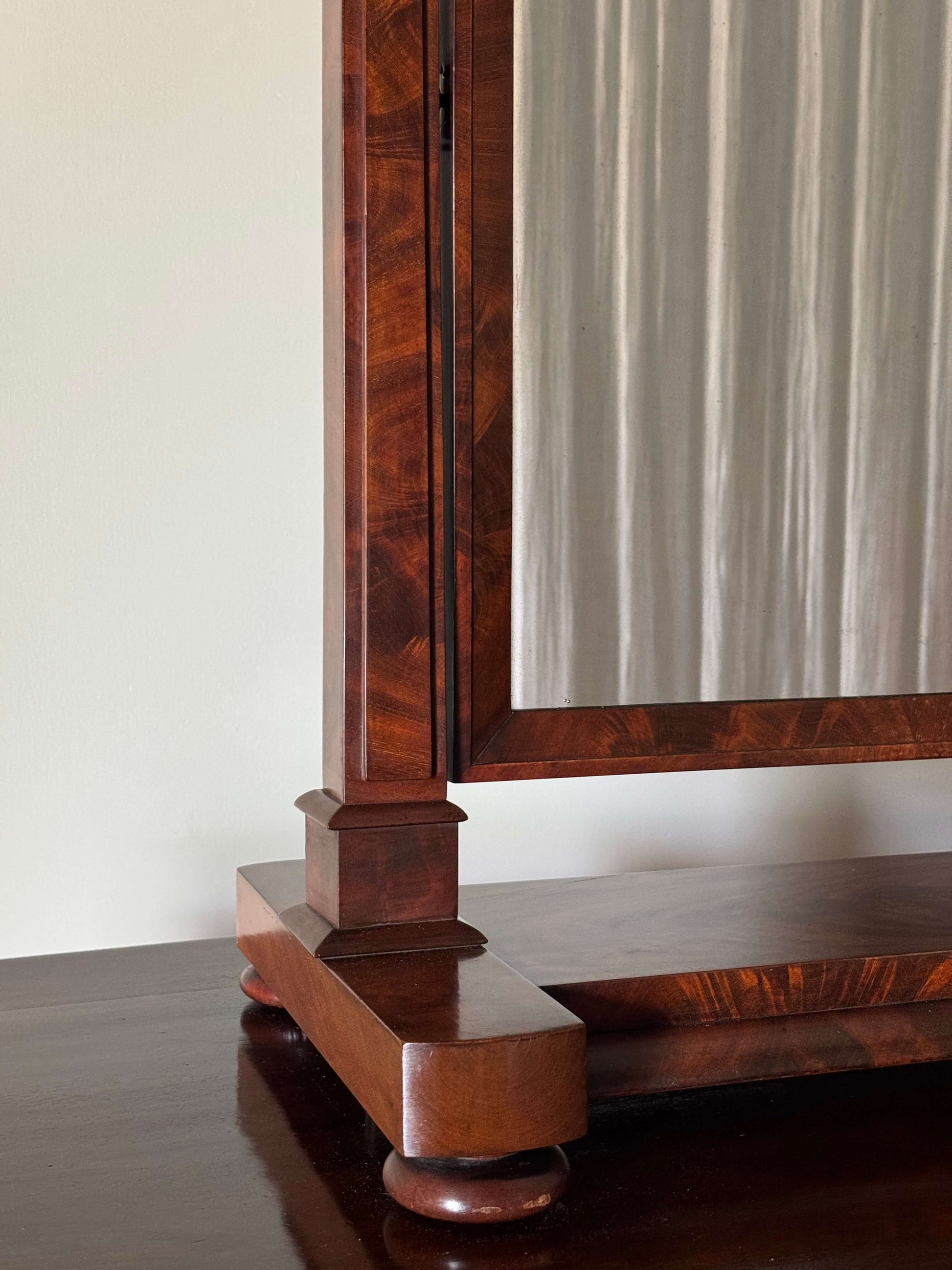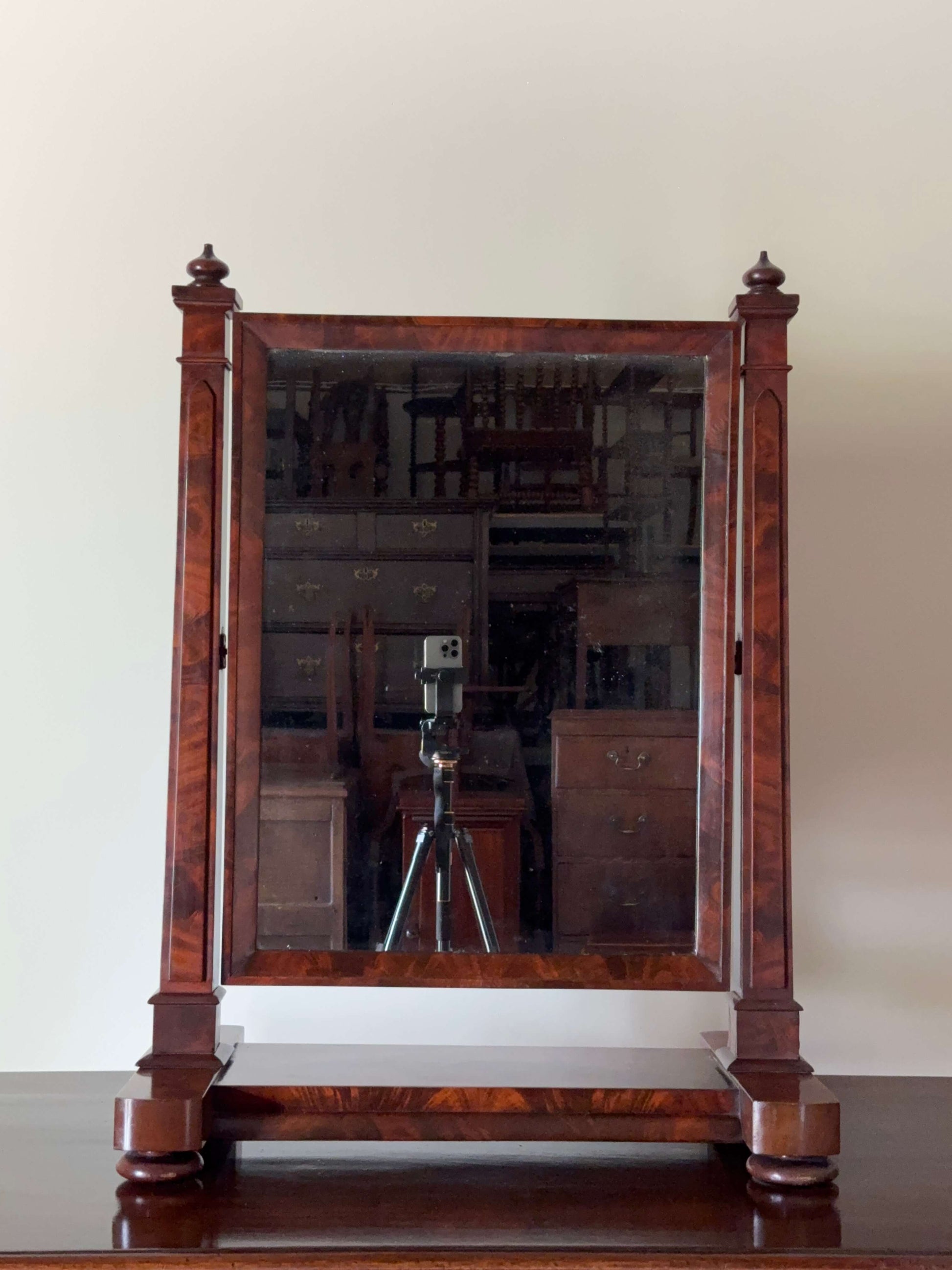A large Victorian flame mahogany dressing mirror. Estimated to be mid 1800s.