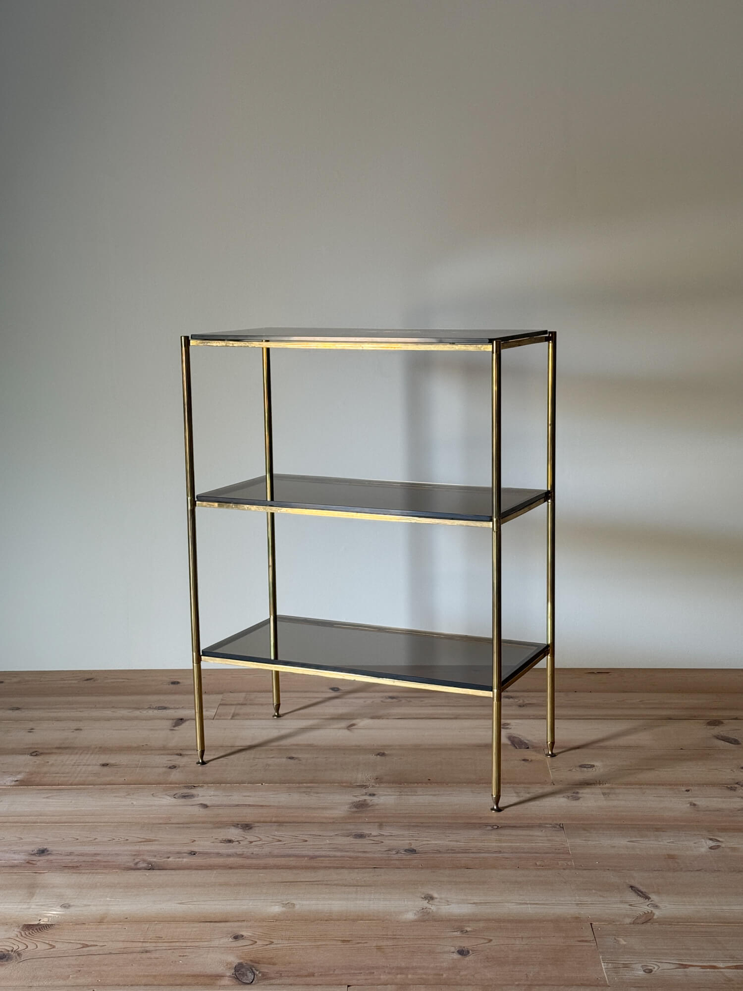 A beautiful mid-century brass and smoked glass shelving unit. Estimated to be 1960s-1970s.