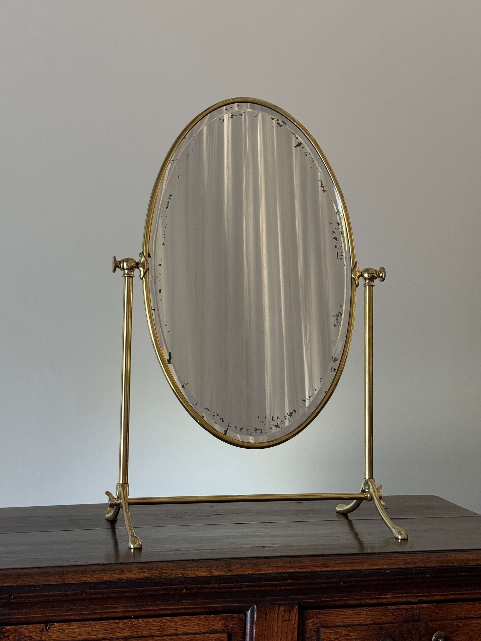 A mid-century brass table-top mirror. Estimated to be 1950s.