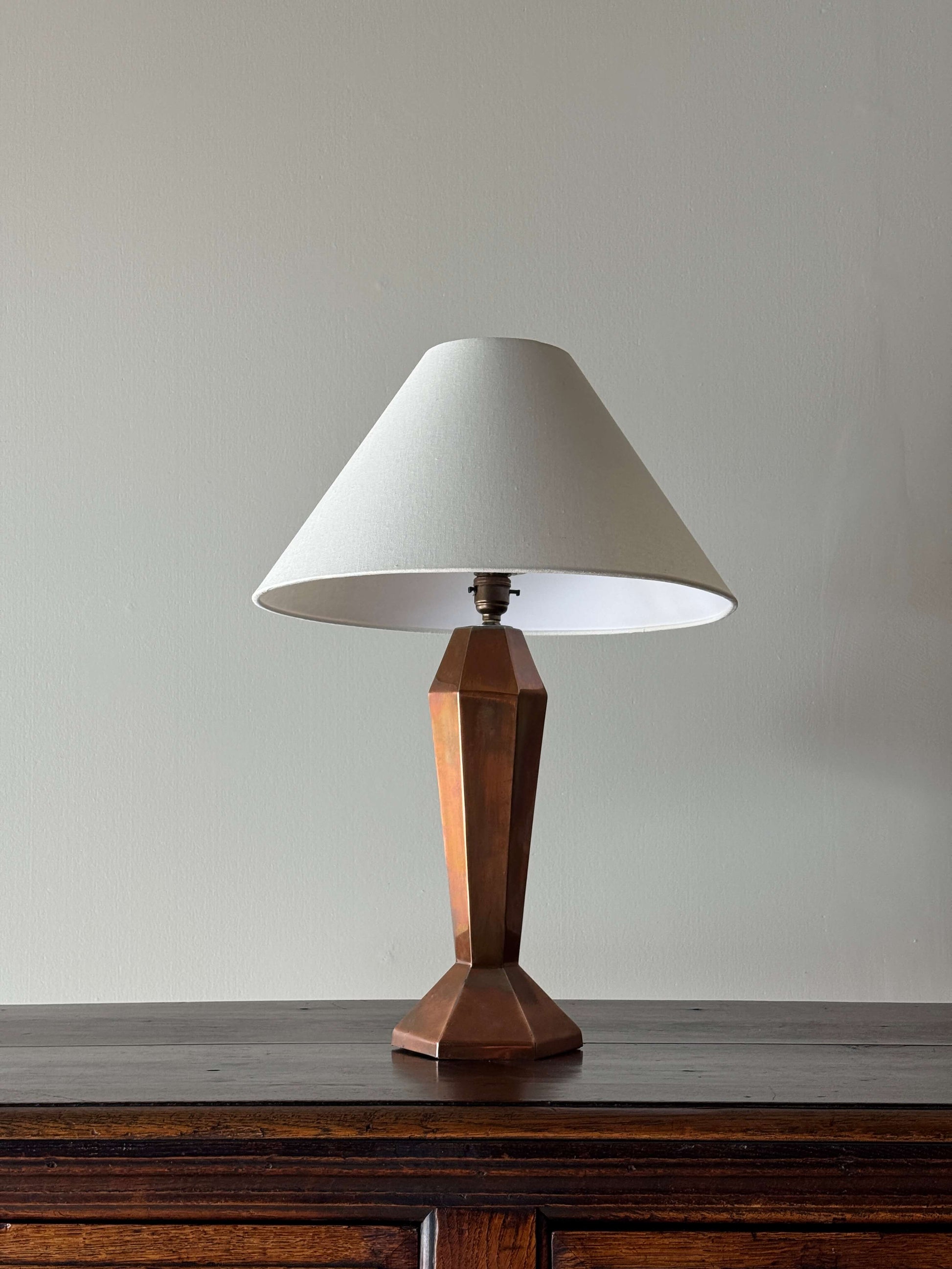 An unusual mid-century copper table lamp (lampshade not included). Estimated to be 1960s.