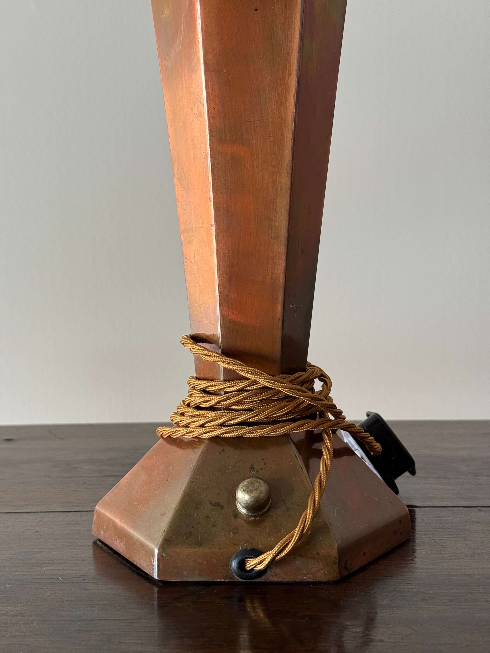 This lamp has been recently rewired with a bronze twisted cable. There are some age-related marks and patination to the copper (please see photographs for details).