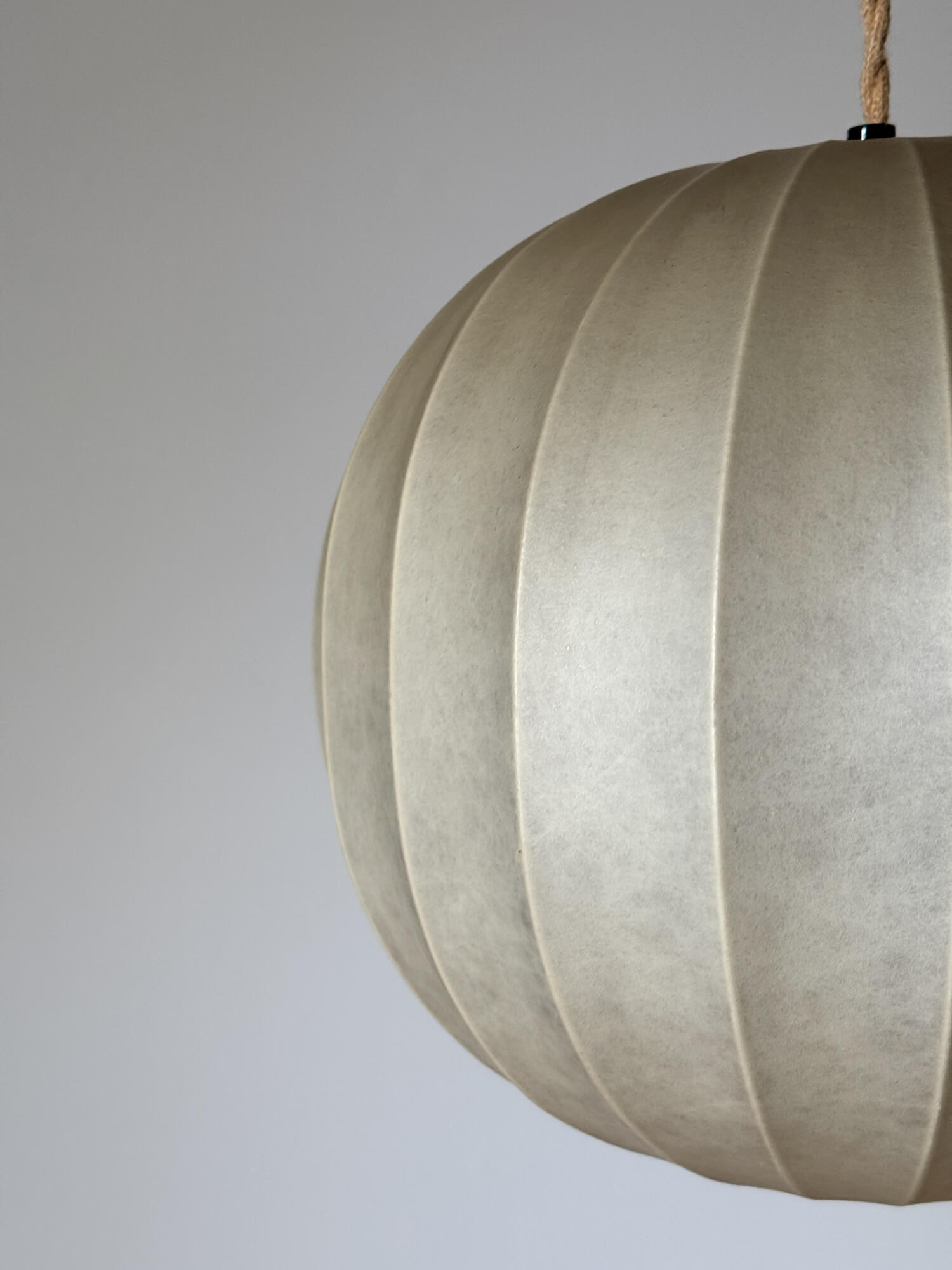 A beautiful mid-century Italian cocoon pendant shade. Estimated to be 1960s-1970s.