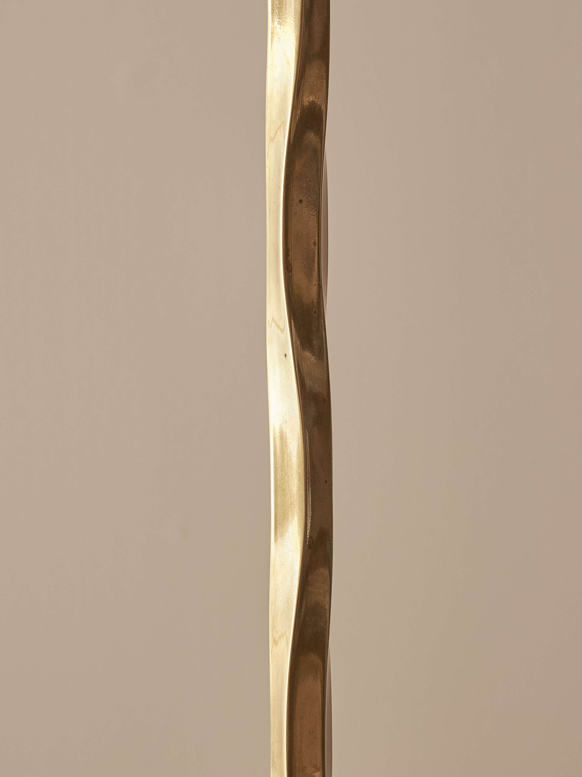 A lovely mid-century twisted brass floor lamp (lampshade not included). Estimated to be 1950s.
