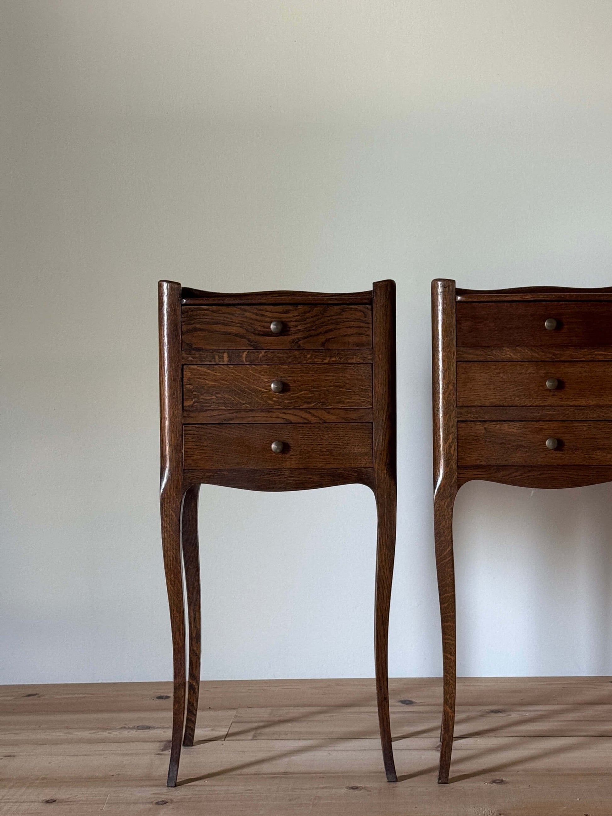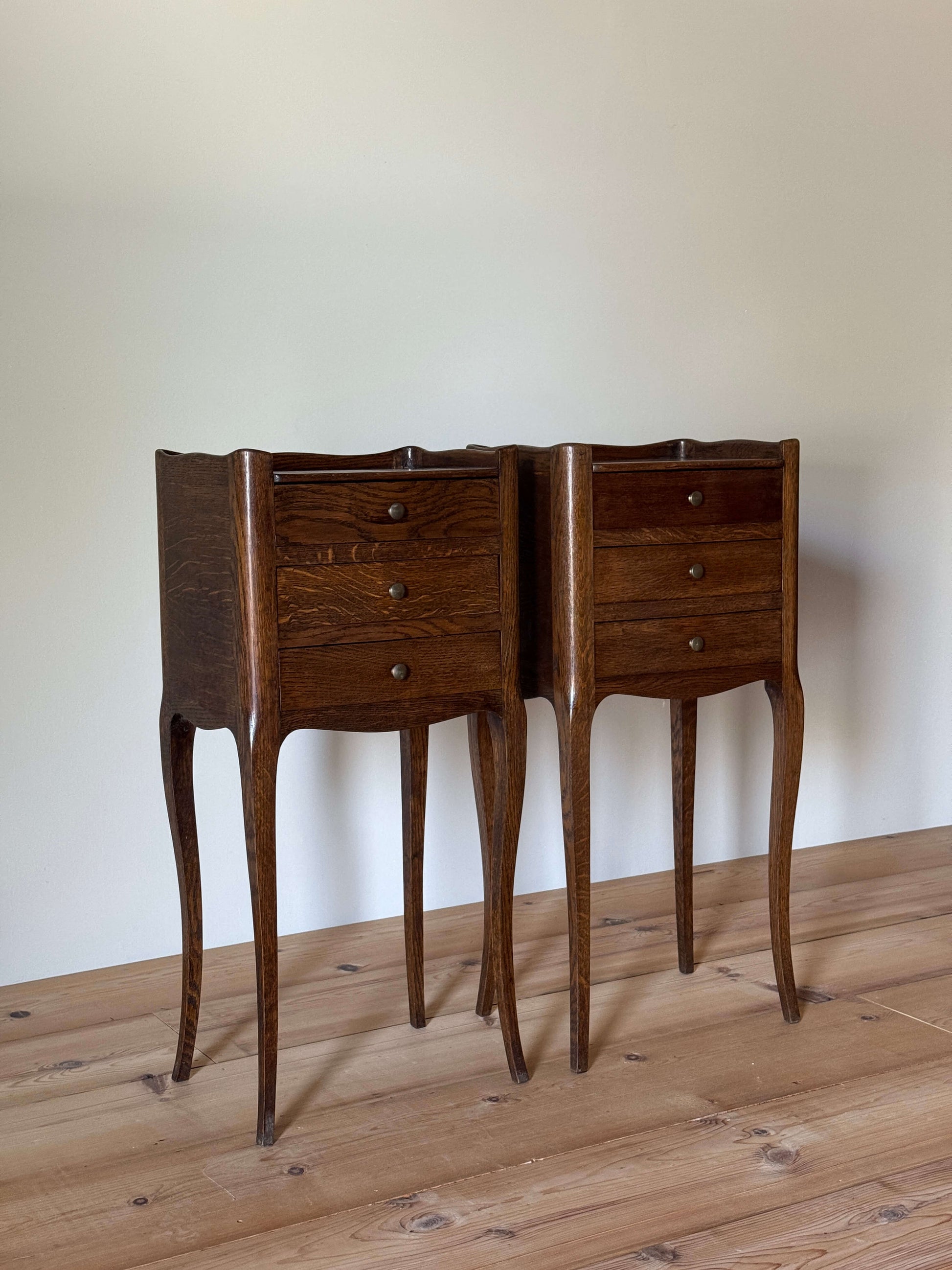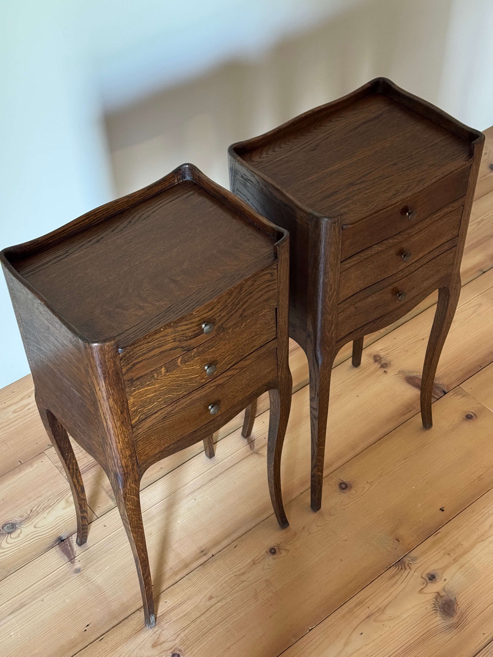 Pair of French bedside tables with three drawers