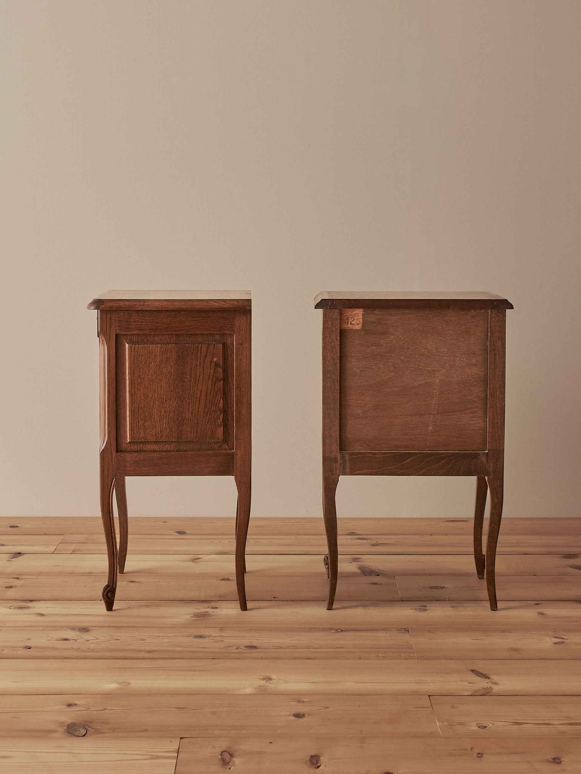A wonderful pair of French mid-century bedside tables. Estimated to be mid 1900s.