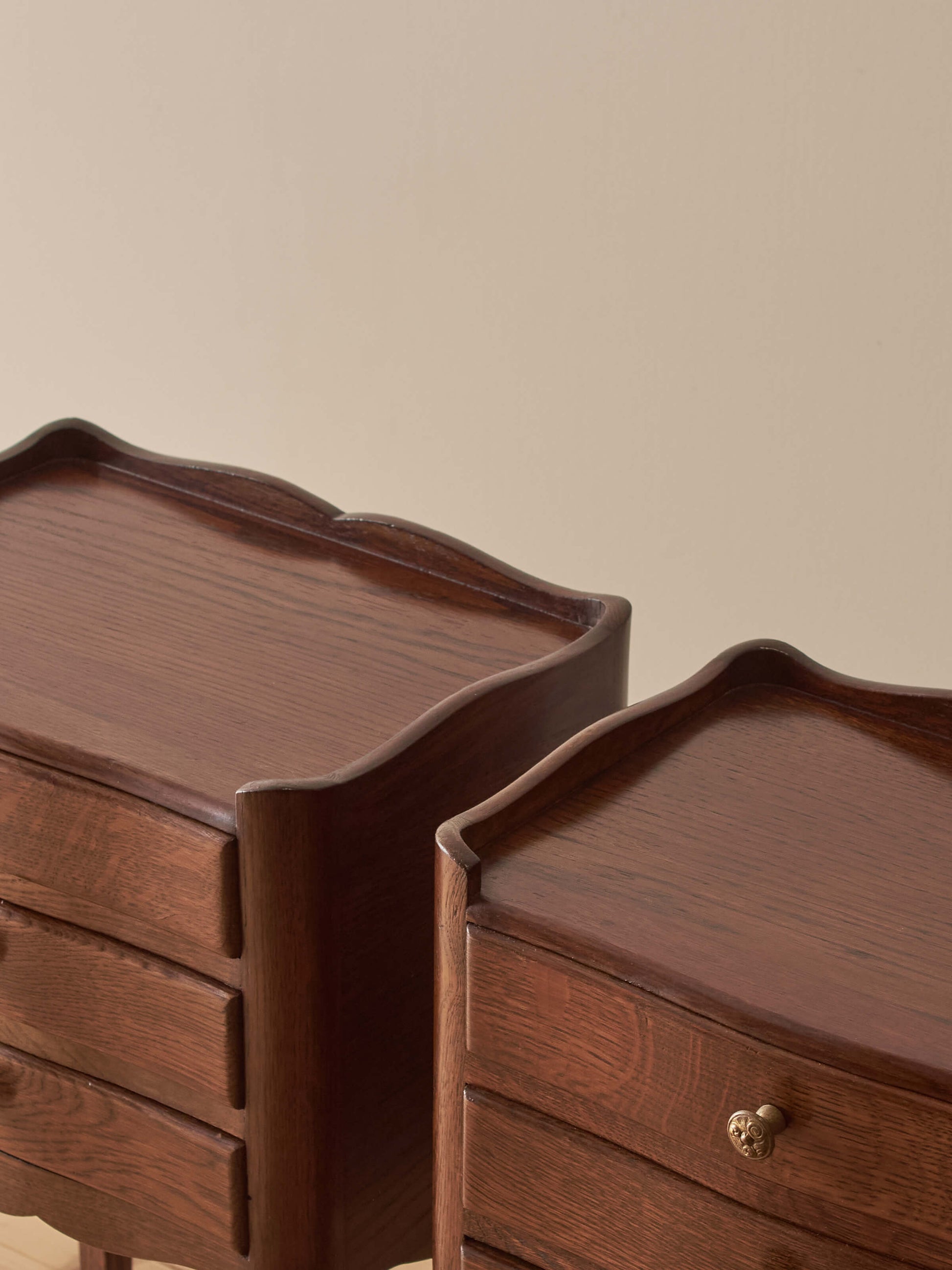 A wonderful pair of French vintage oak bedside tables. Estimated to be mid-1900s.