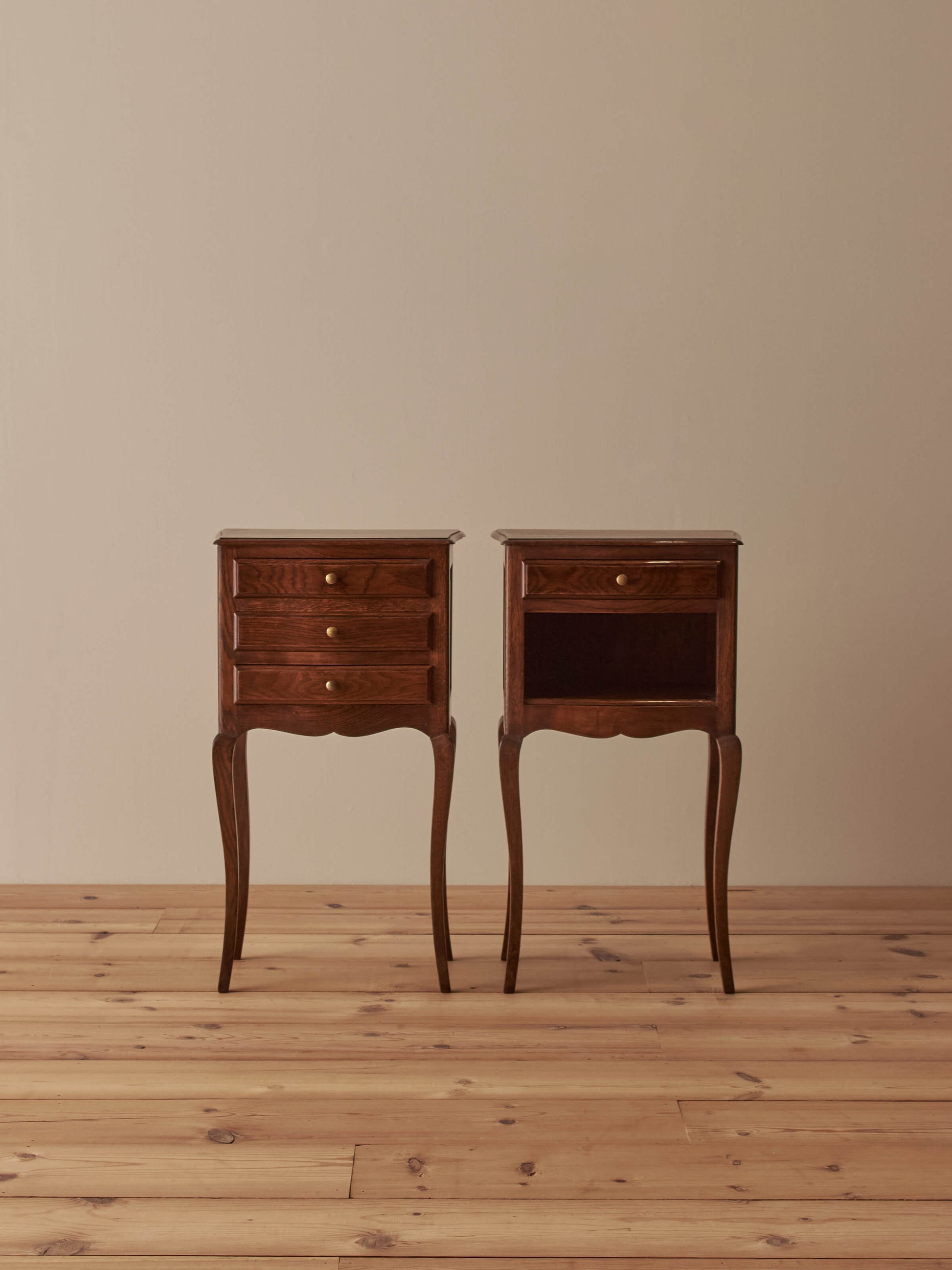 Pair of French vintage oak bedside tables