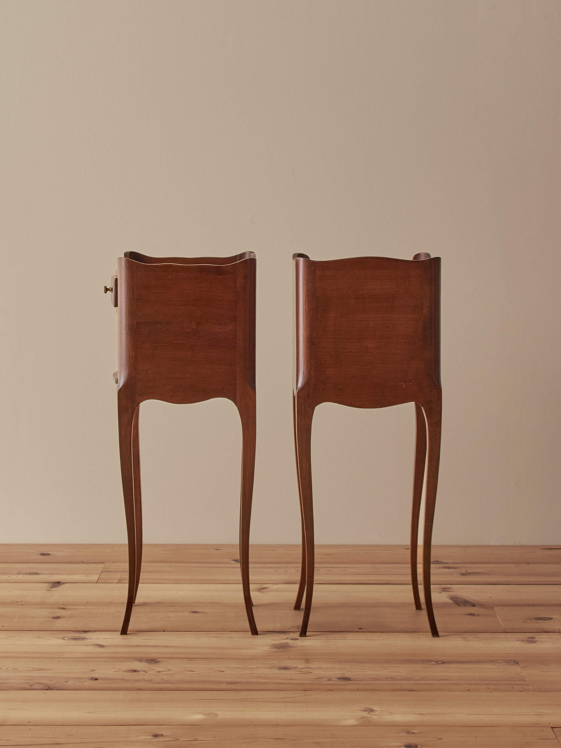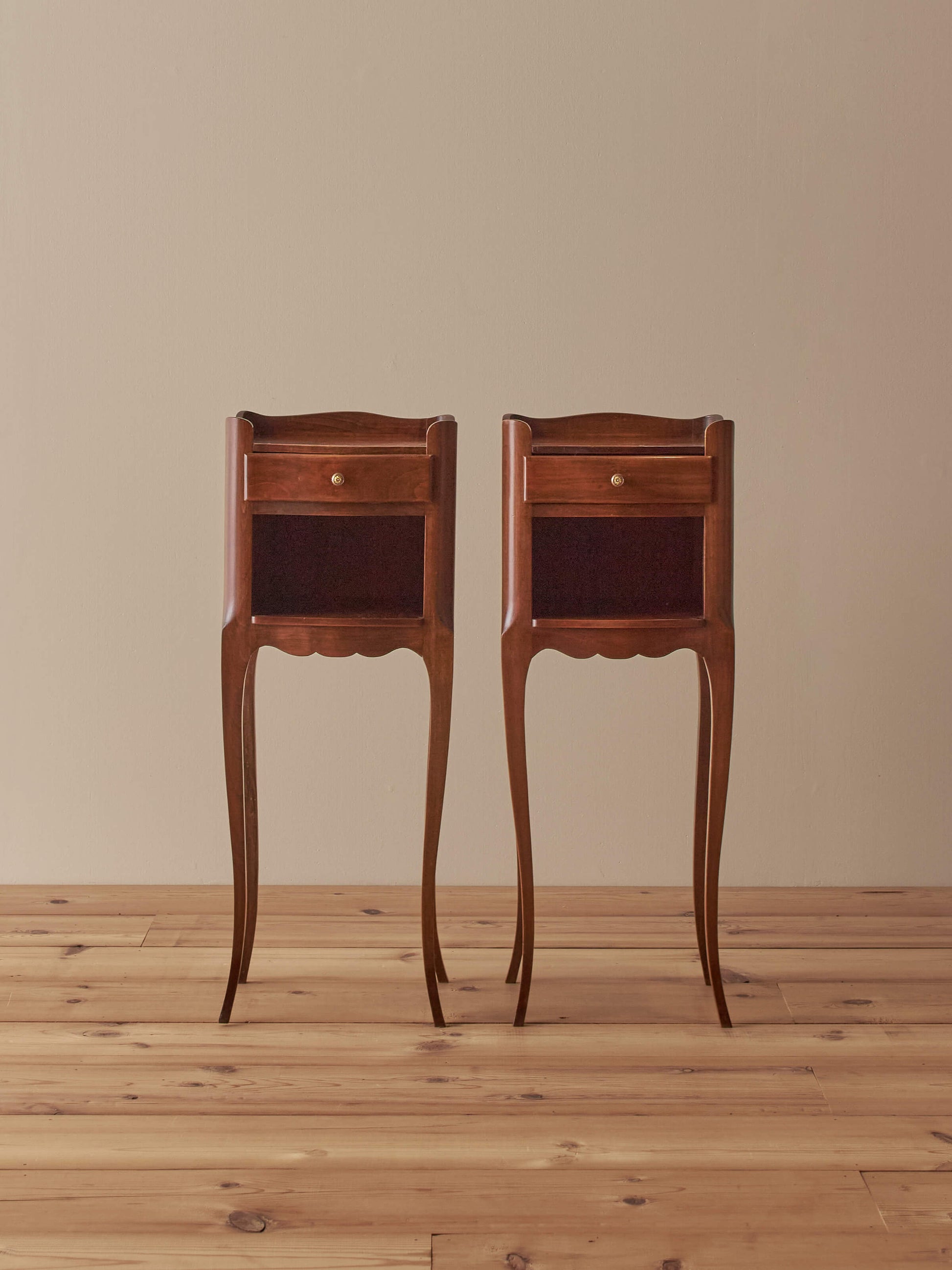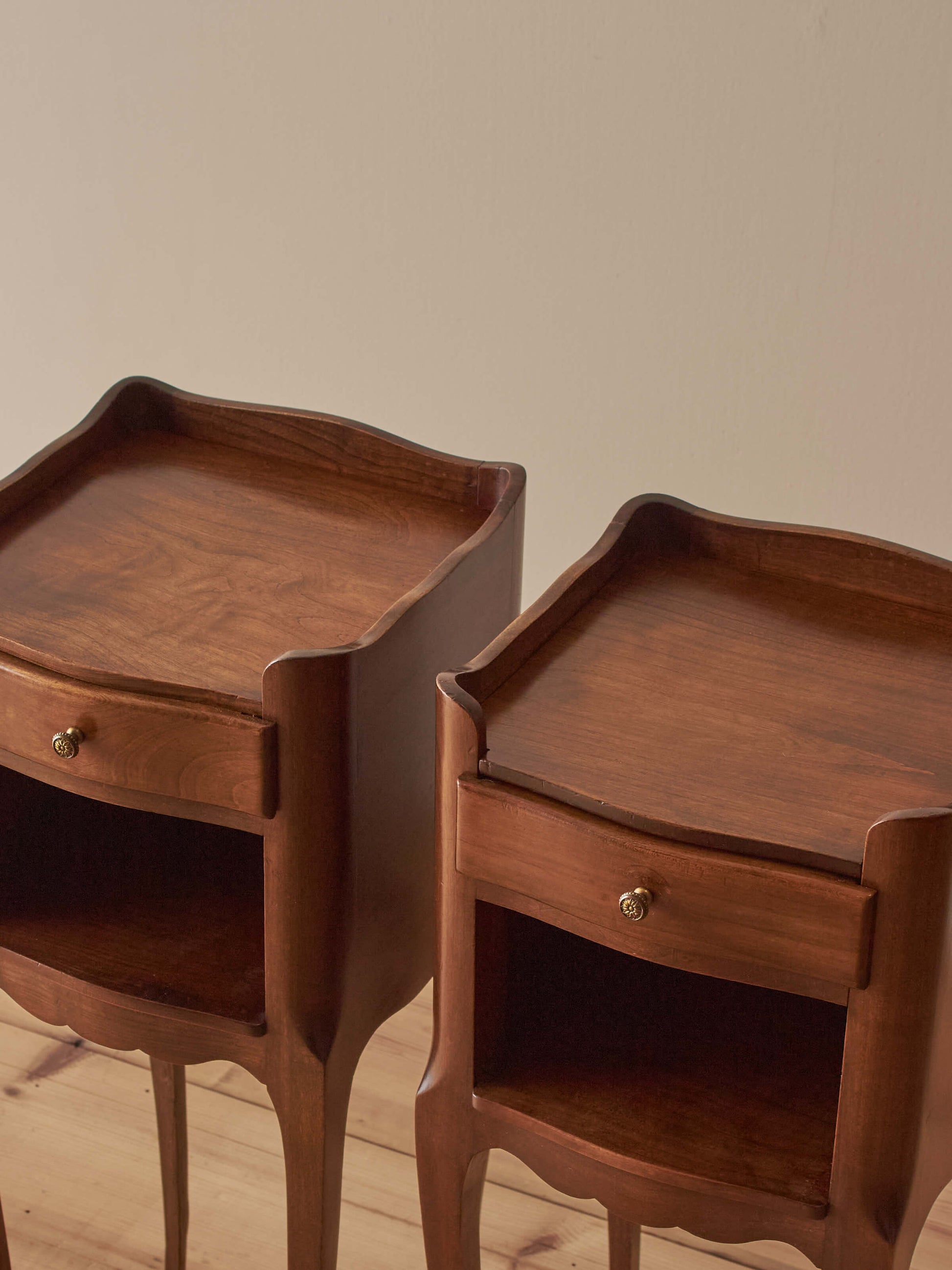 A wonderful pair of petite cherry bedside tables. Estimated to be mid-late 1900s.