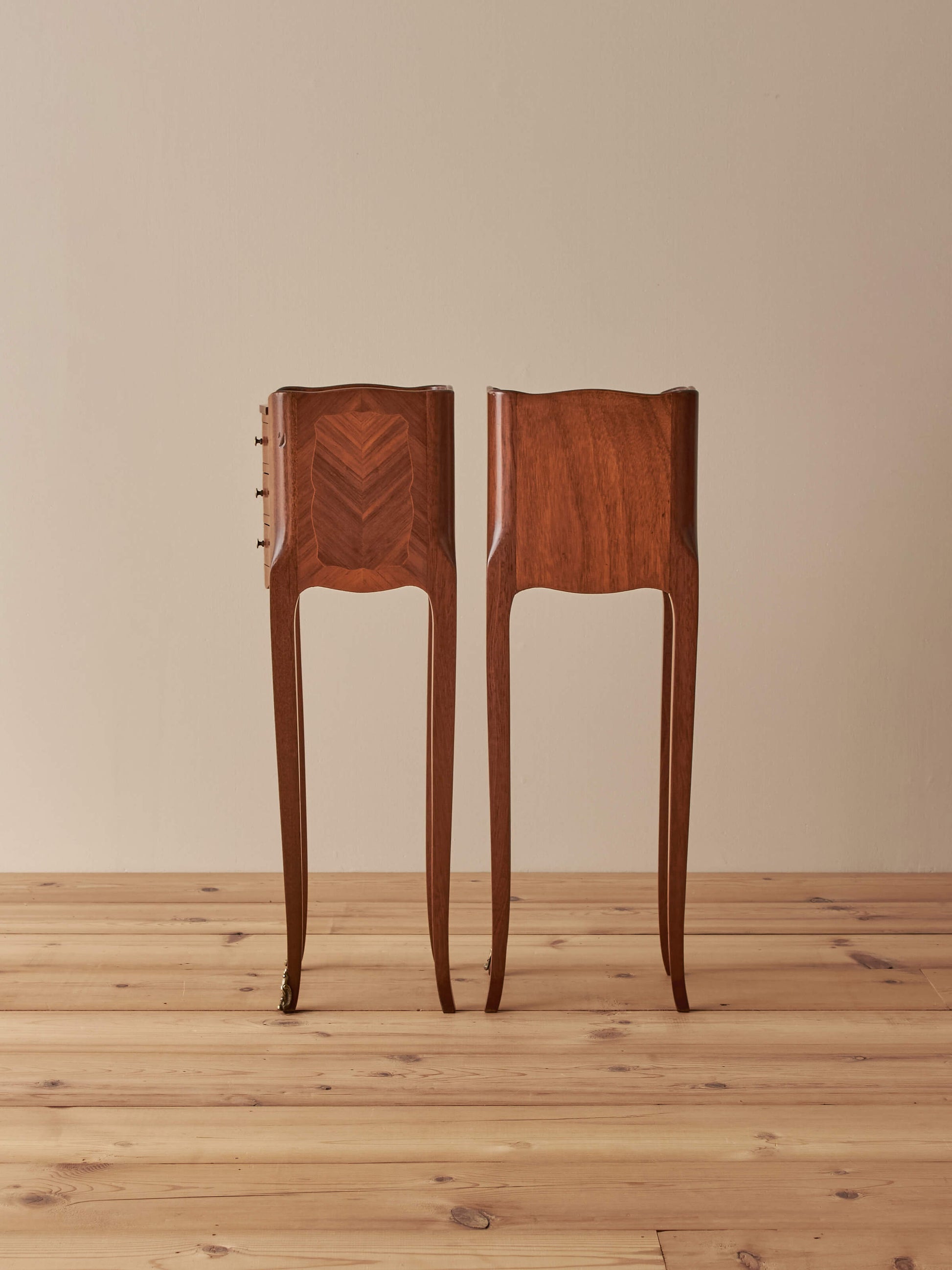 Pair of petite French vintage kingwood bedside tables