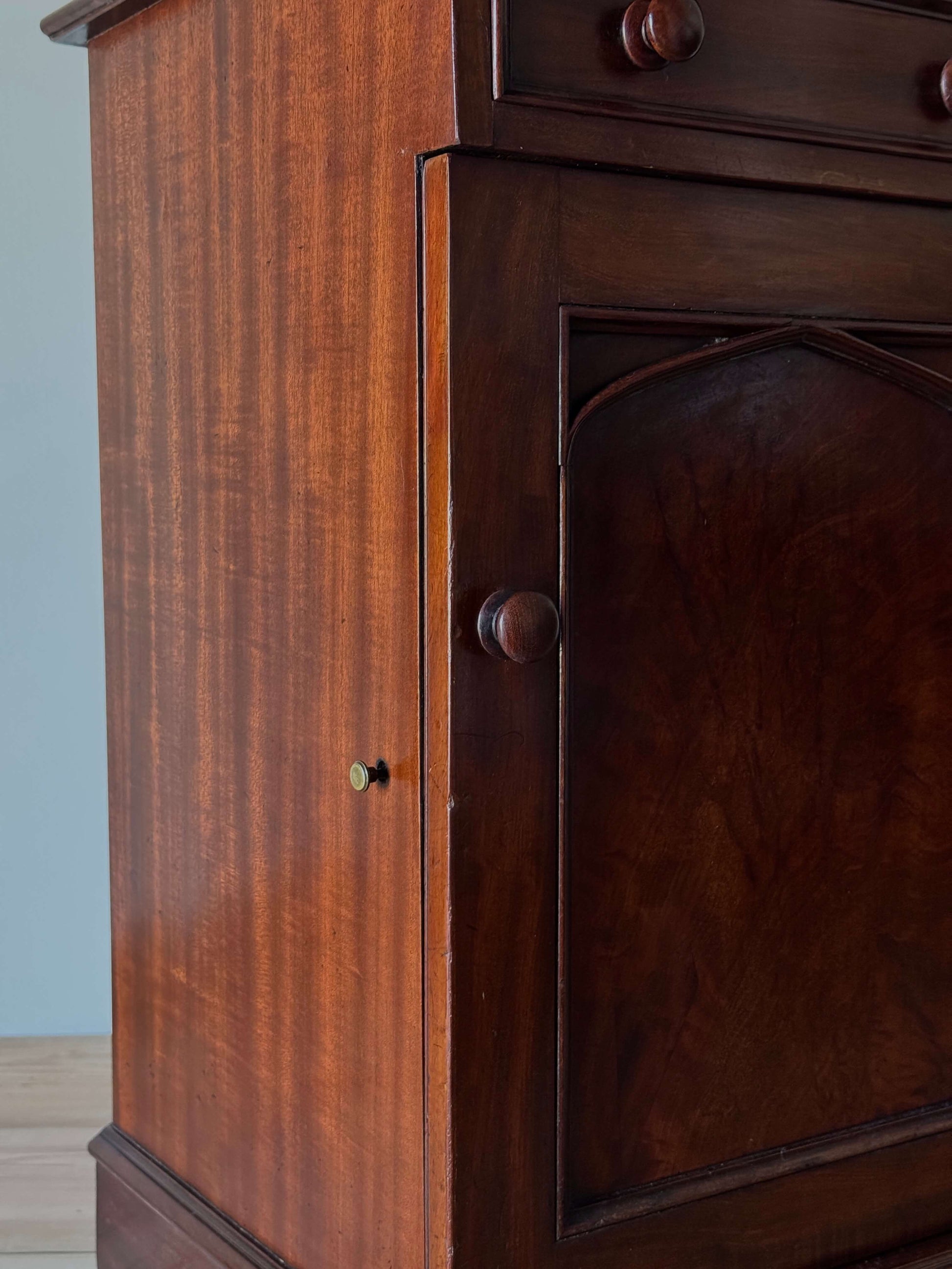 A striking pair of Victorian mahogany bedside cabinets. Estimated to be late 1800s.