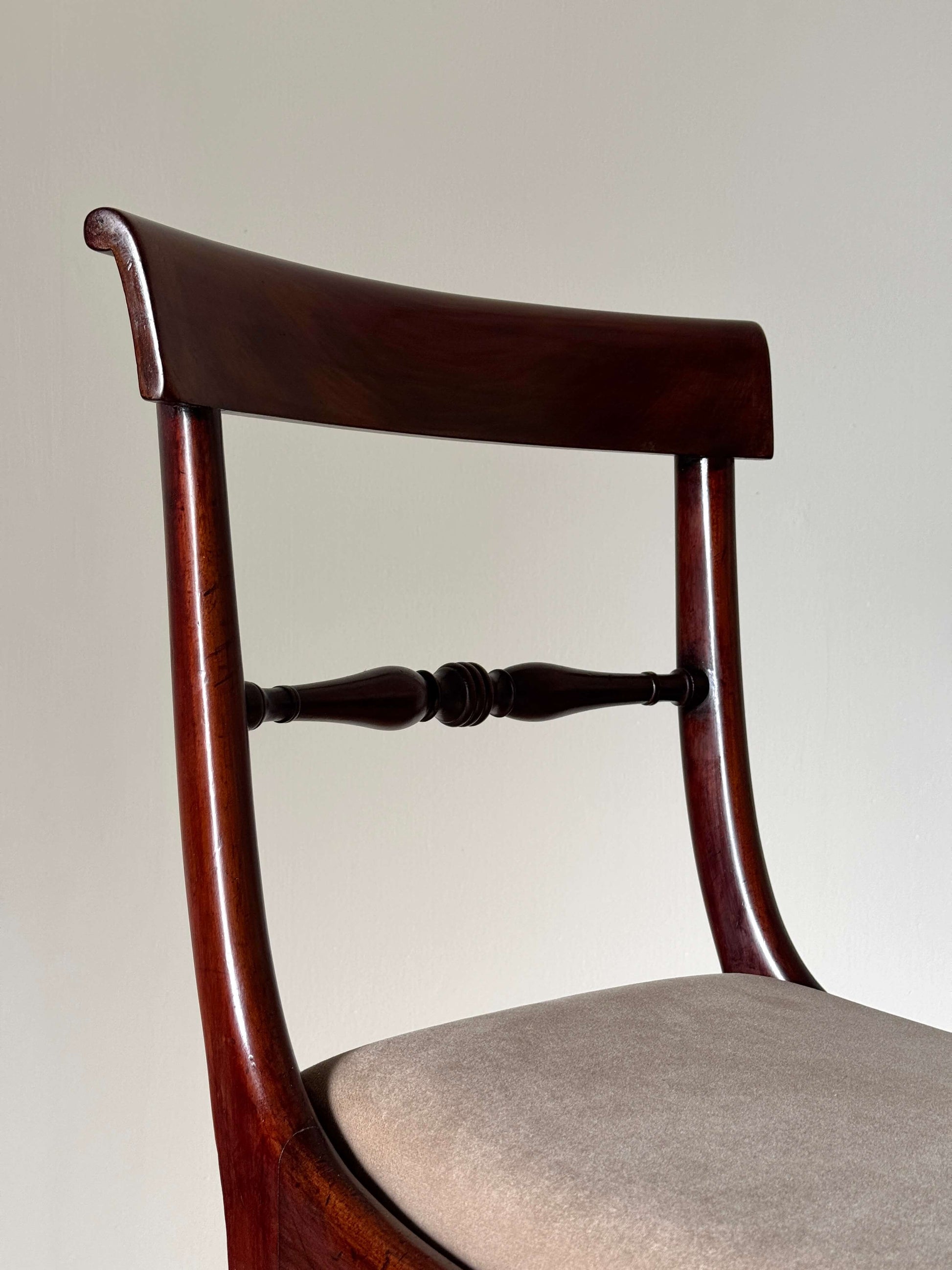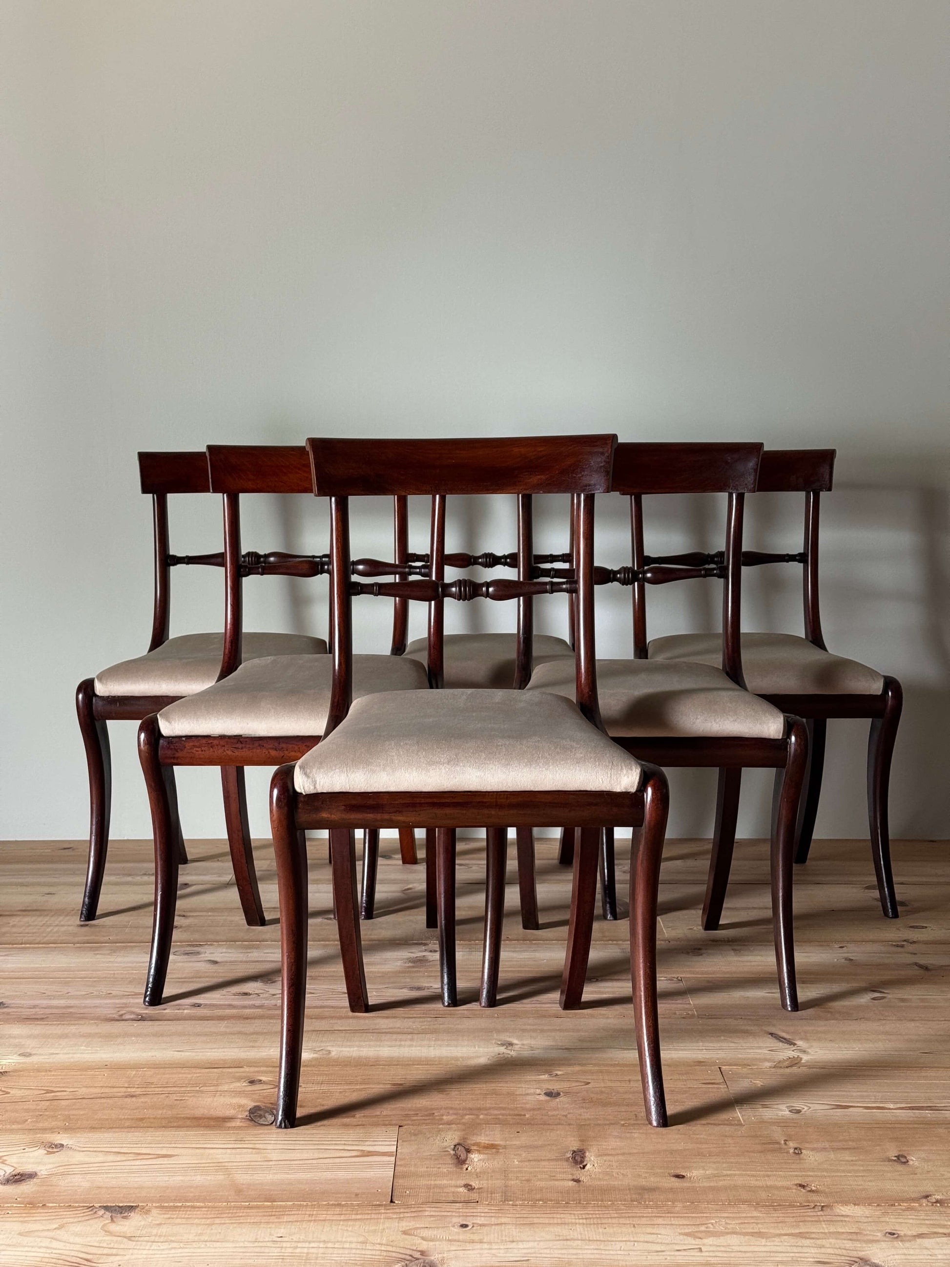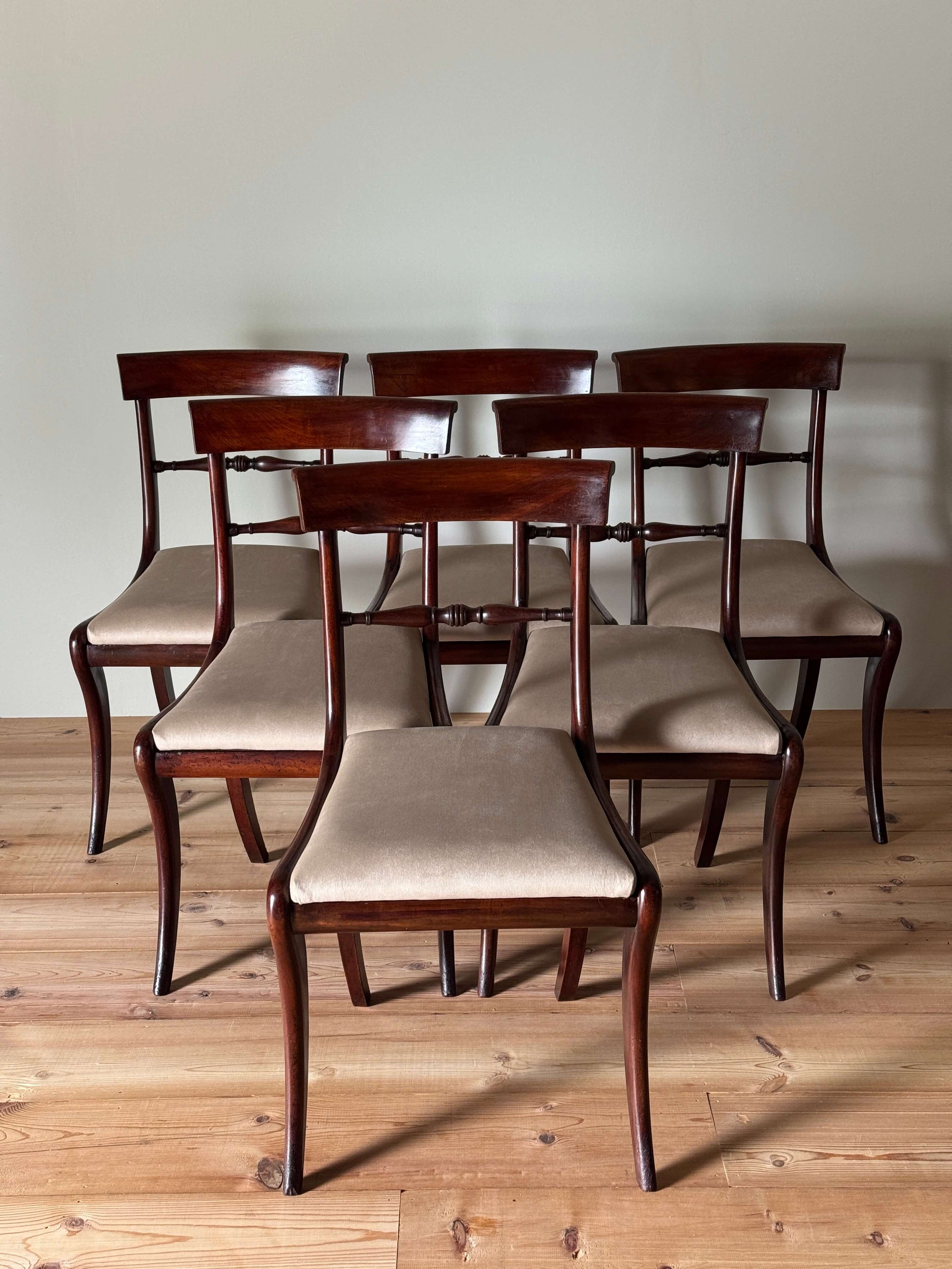 A set of six Regency mahogany dining chairs. Estimated to be 1810-1820.