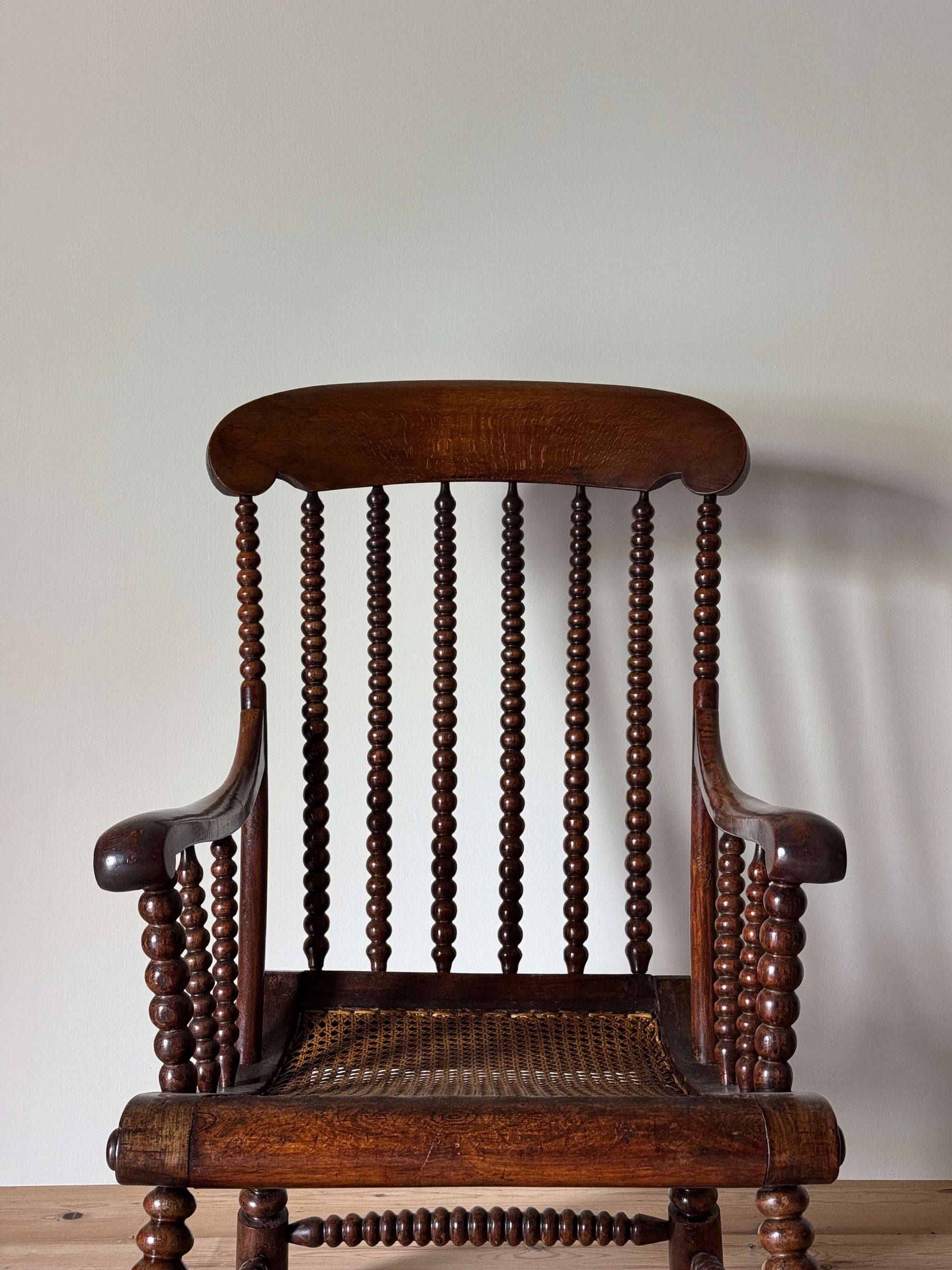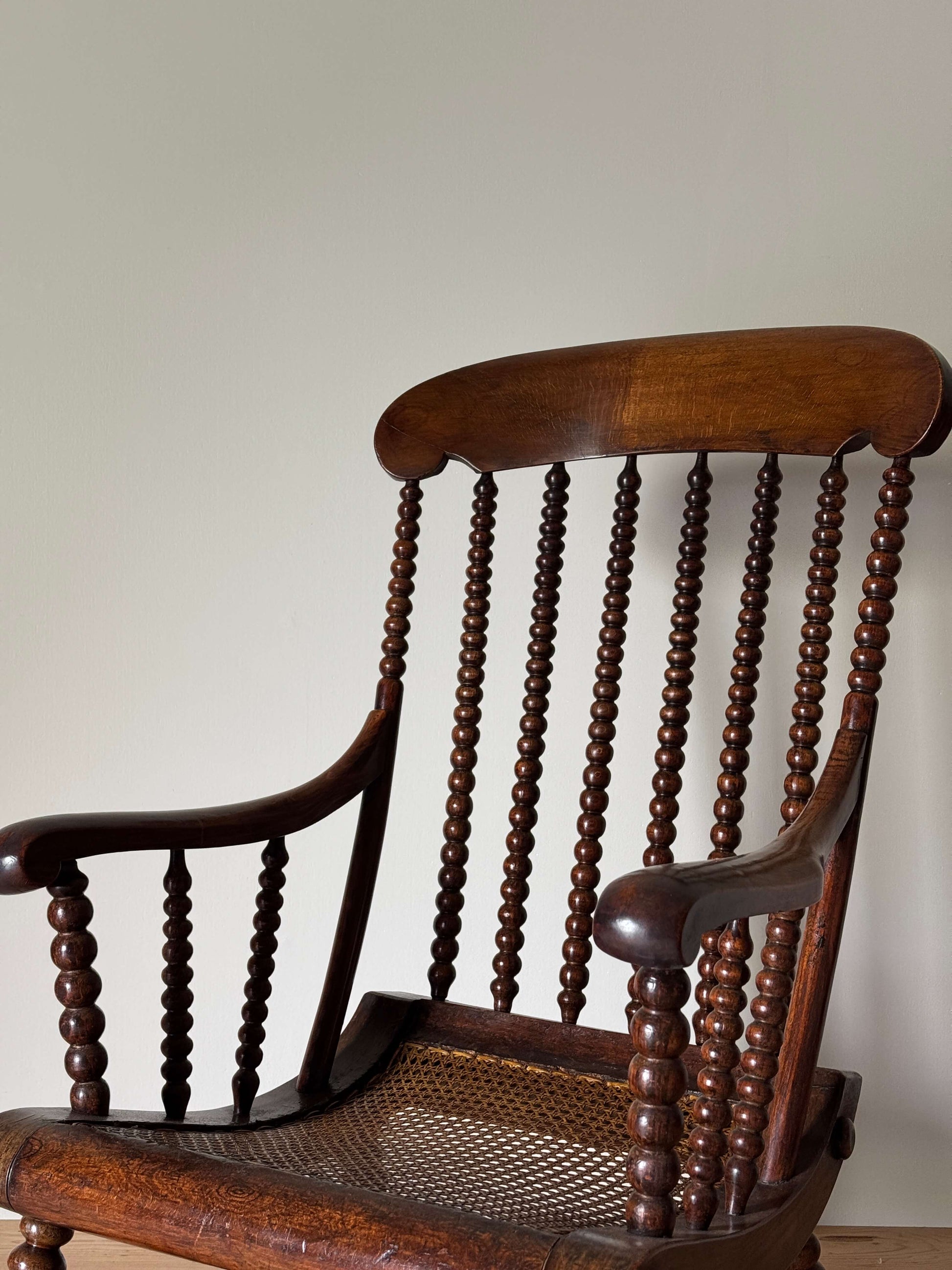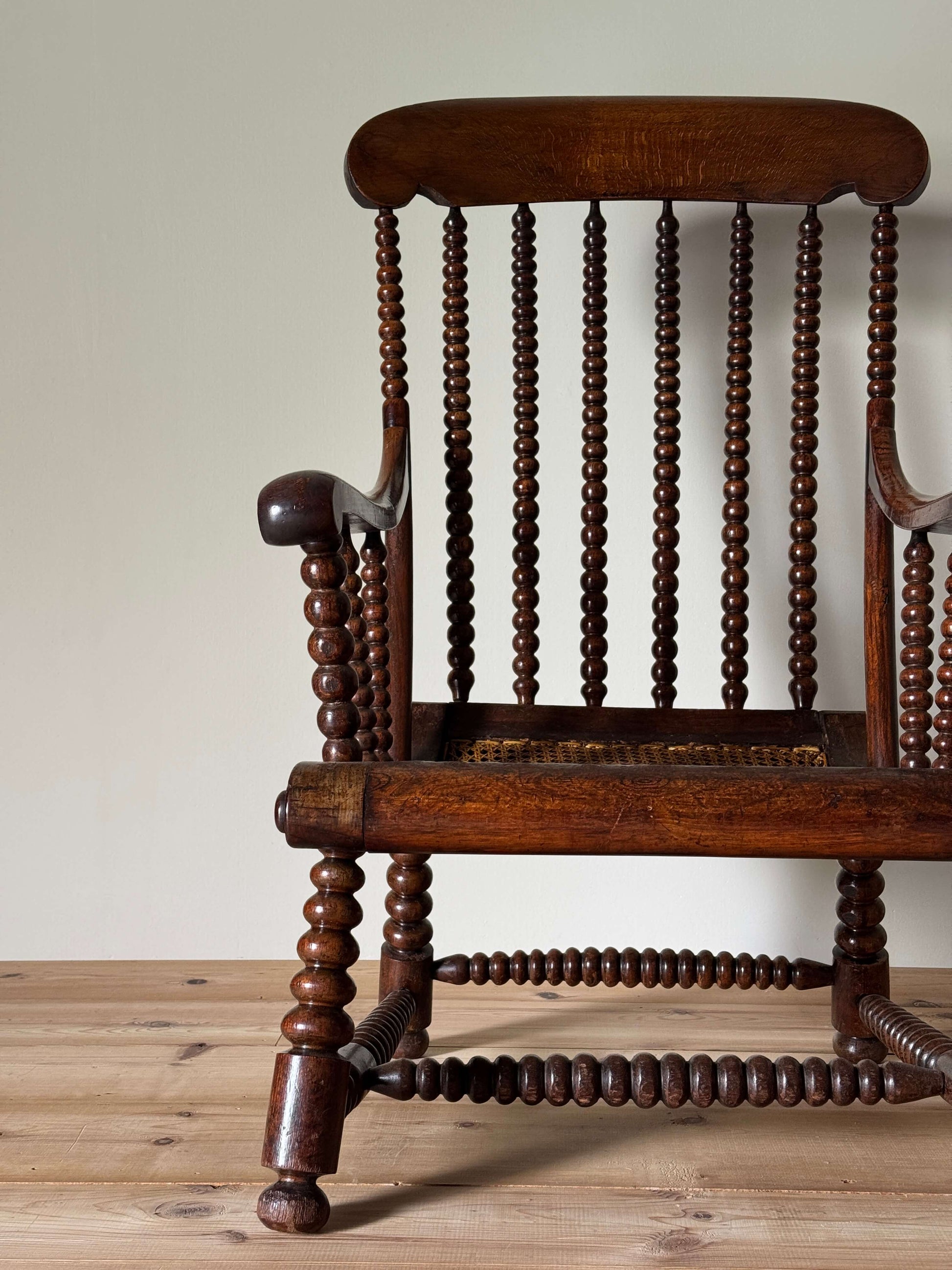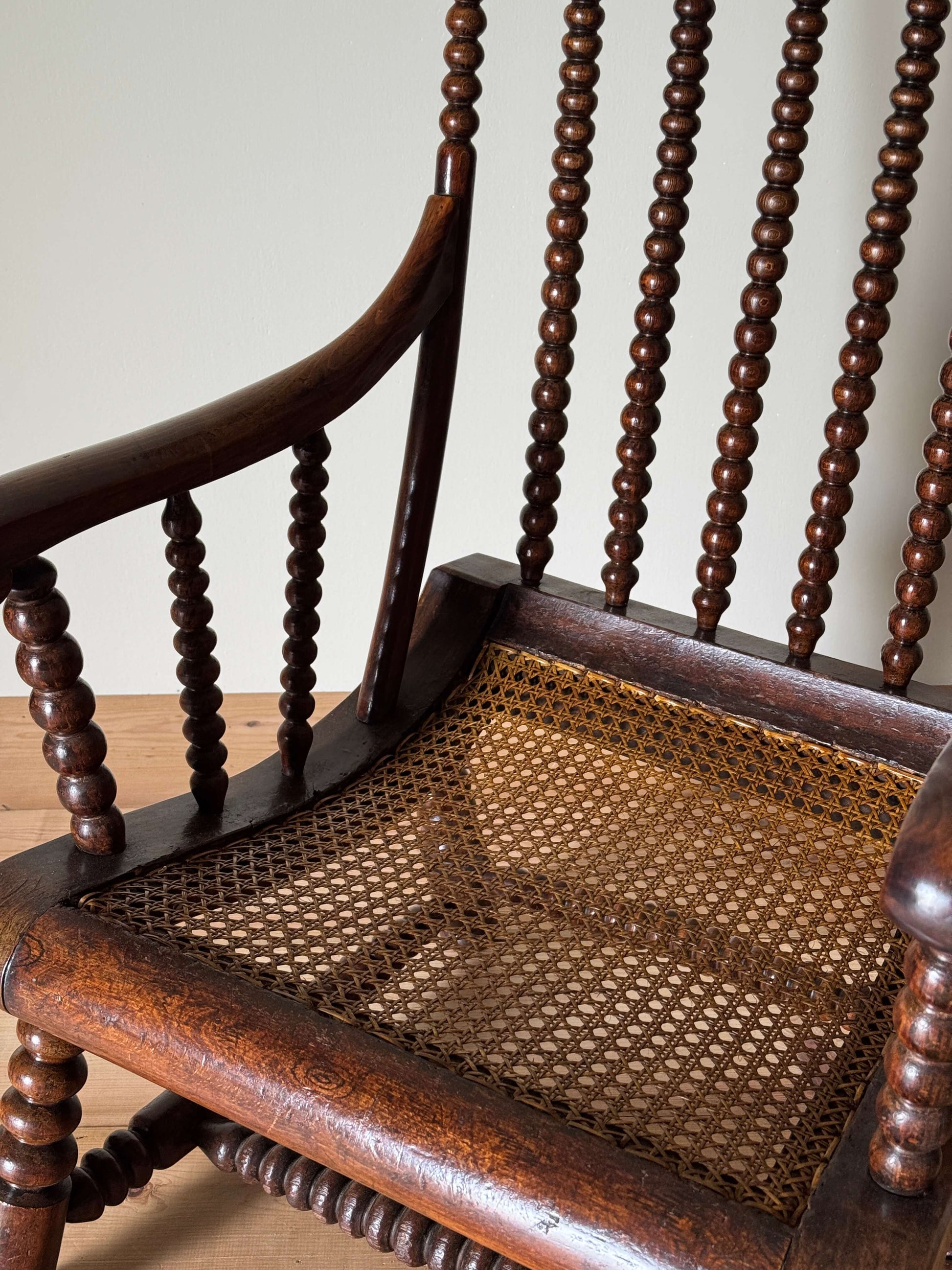 A Victorian bobbin framed armchair. Estimated to be late 1800s.