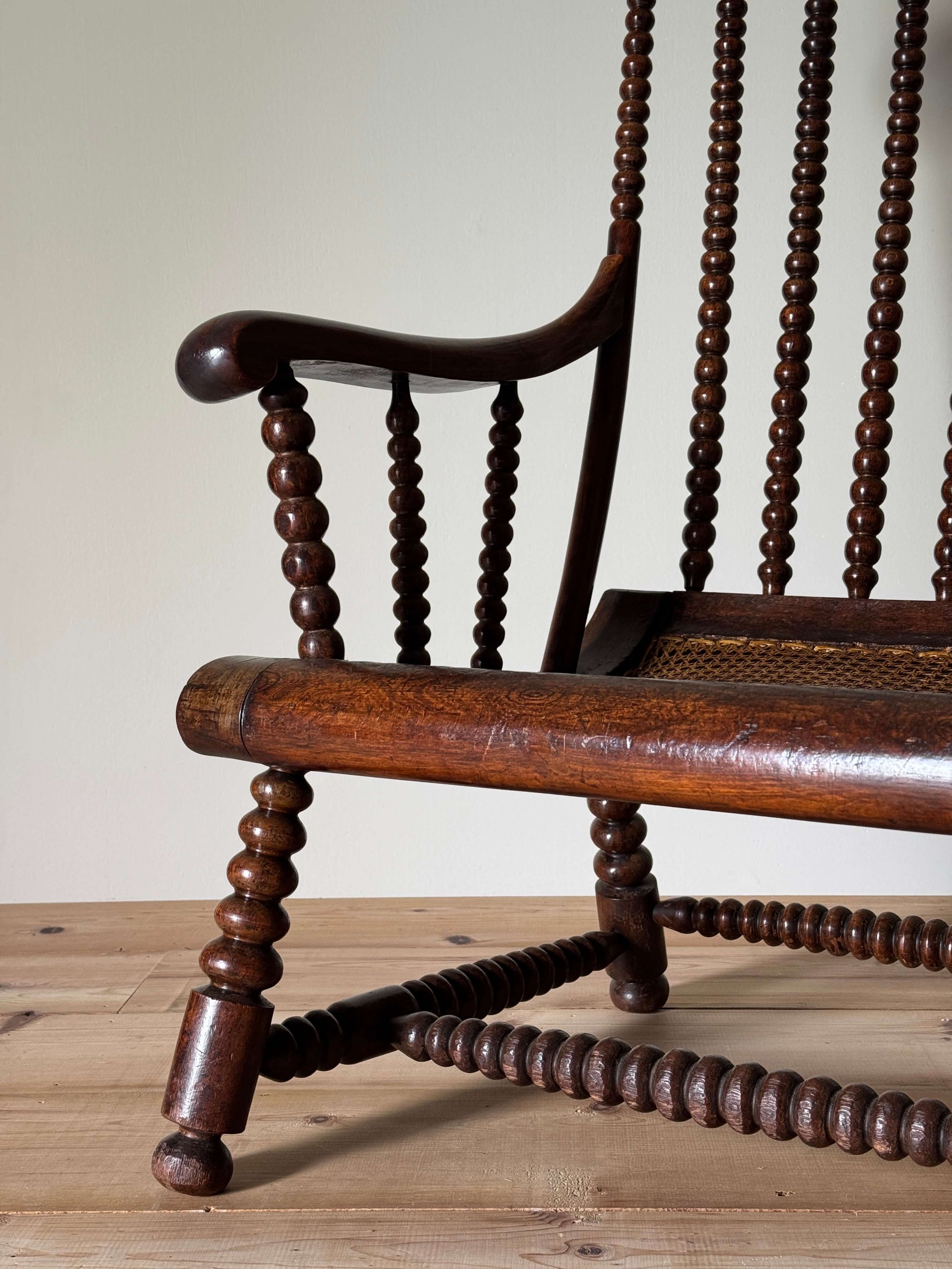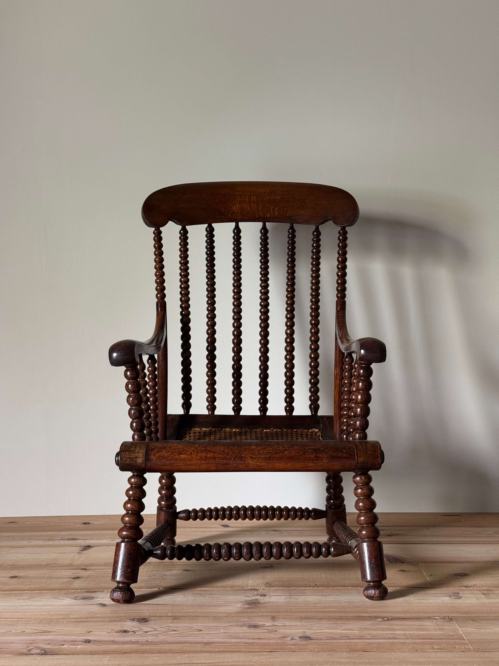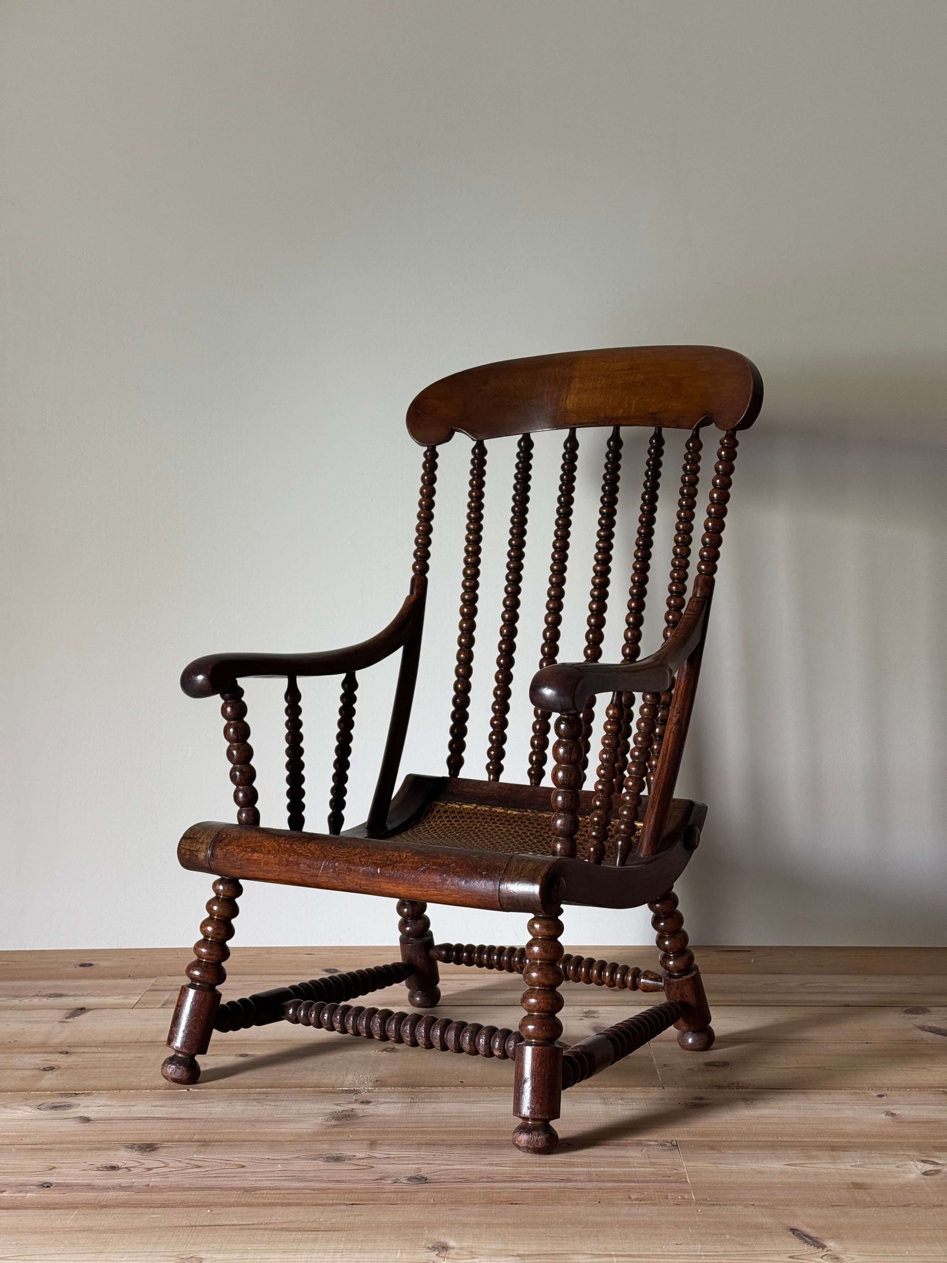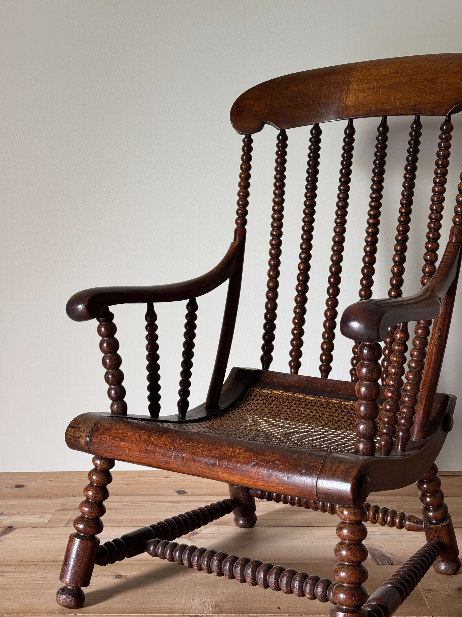 A Victorian bobbin framed armchair. Estimated to be late 1800s.