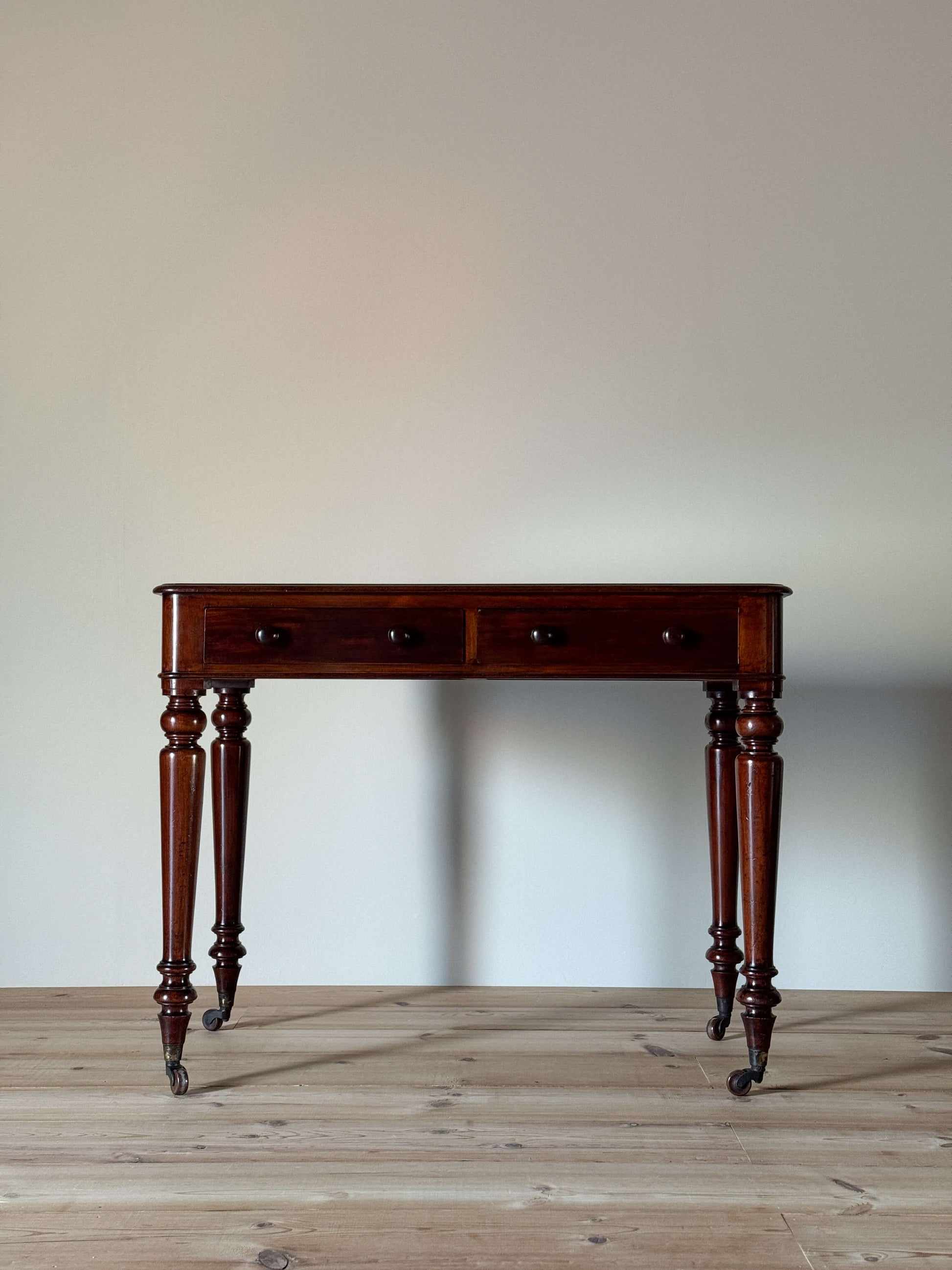 A wonderful Victorian mahogany desk on ceramic castors. Estimated to be mid-late 1800s.