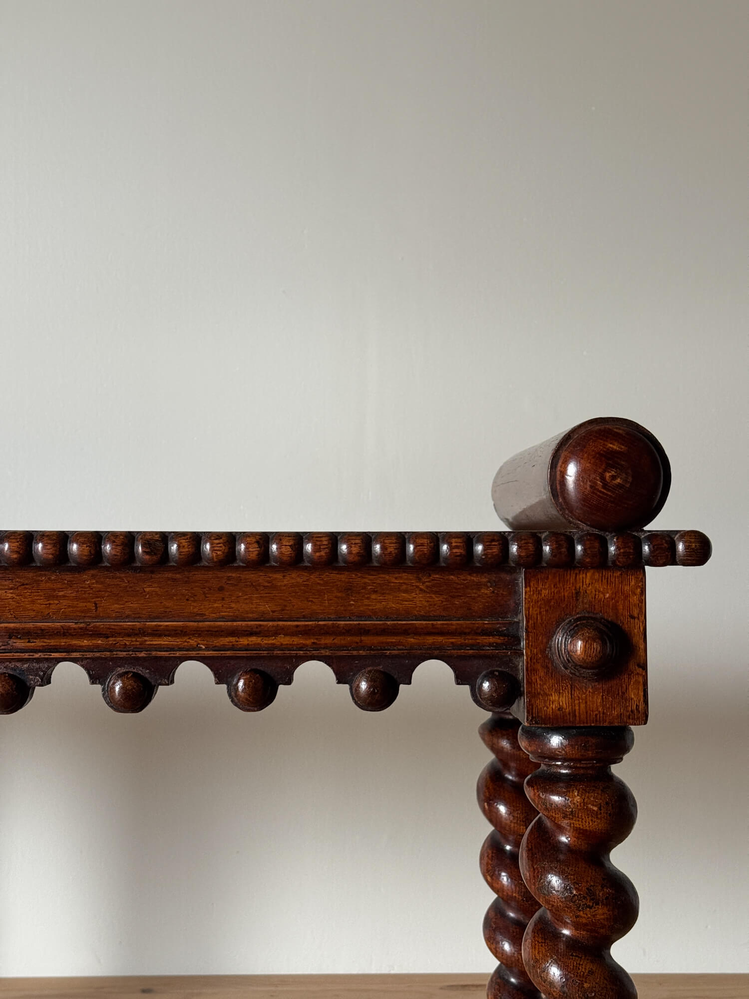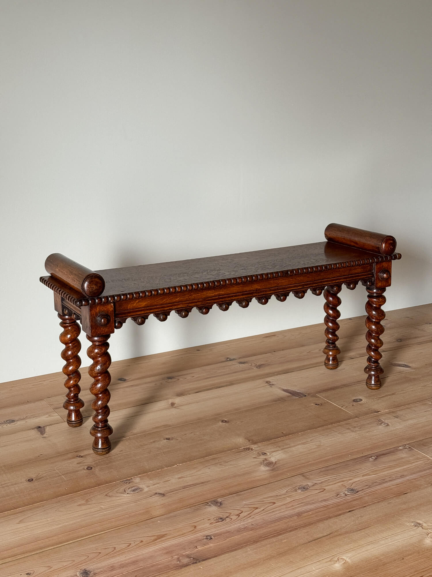 A wonderful oak bench with barley twist legs. Estimated to be late 1800s.
