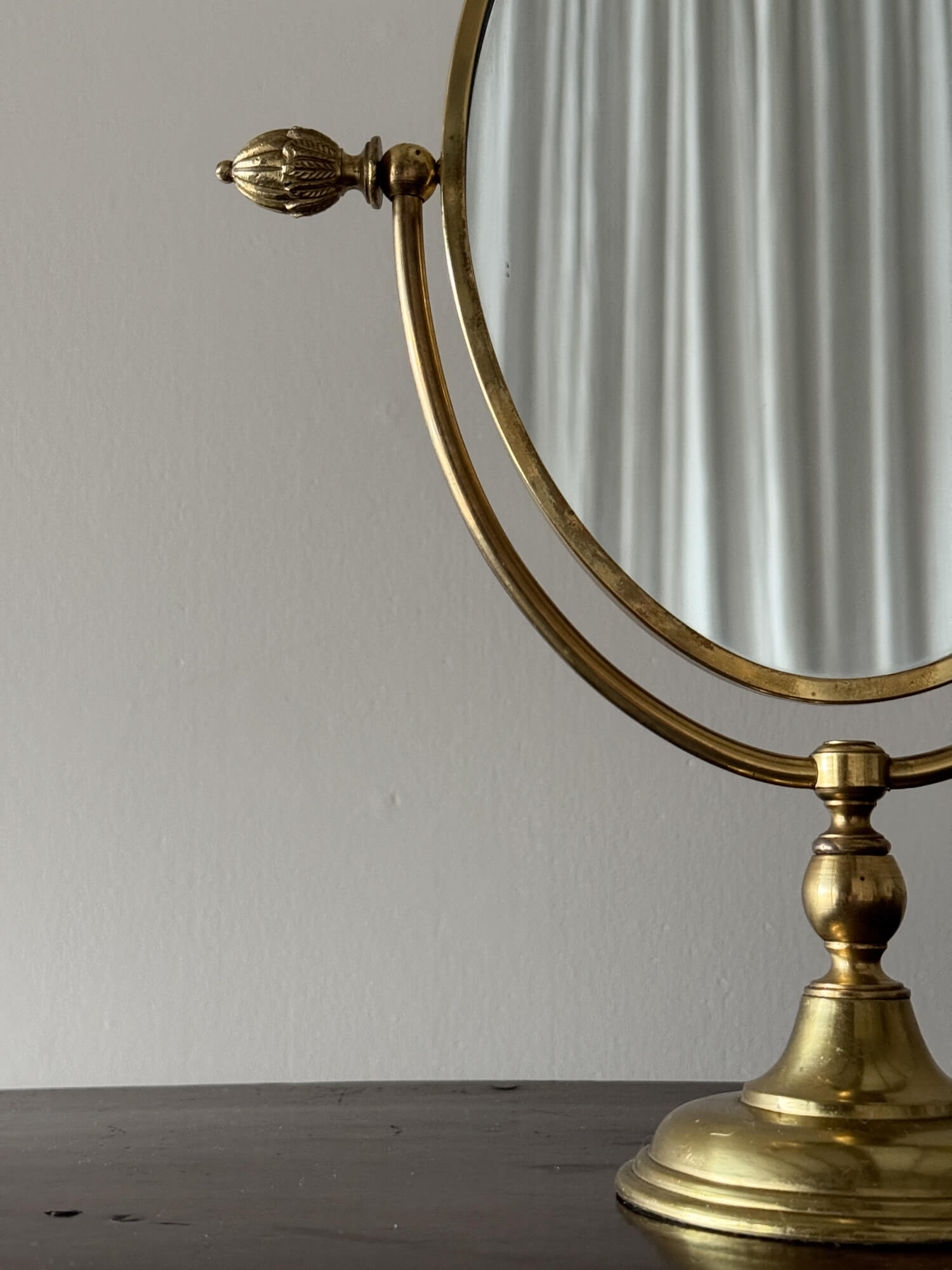 A wonderful Victorian oval brass table-top mirror. Estimated to be late 1800s.