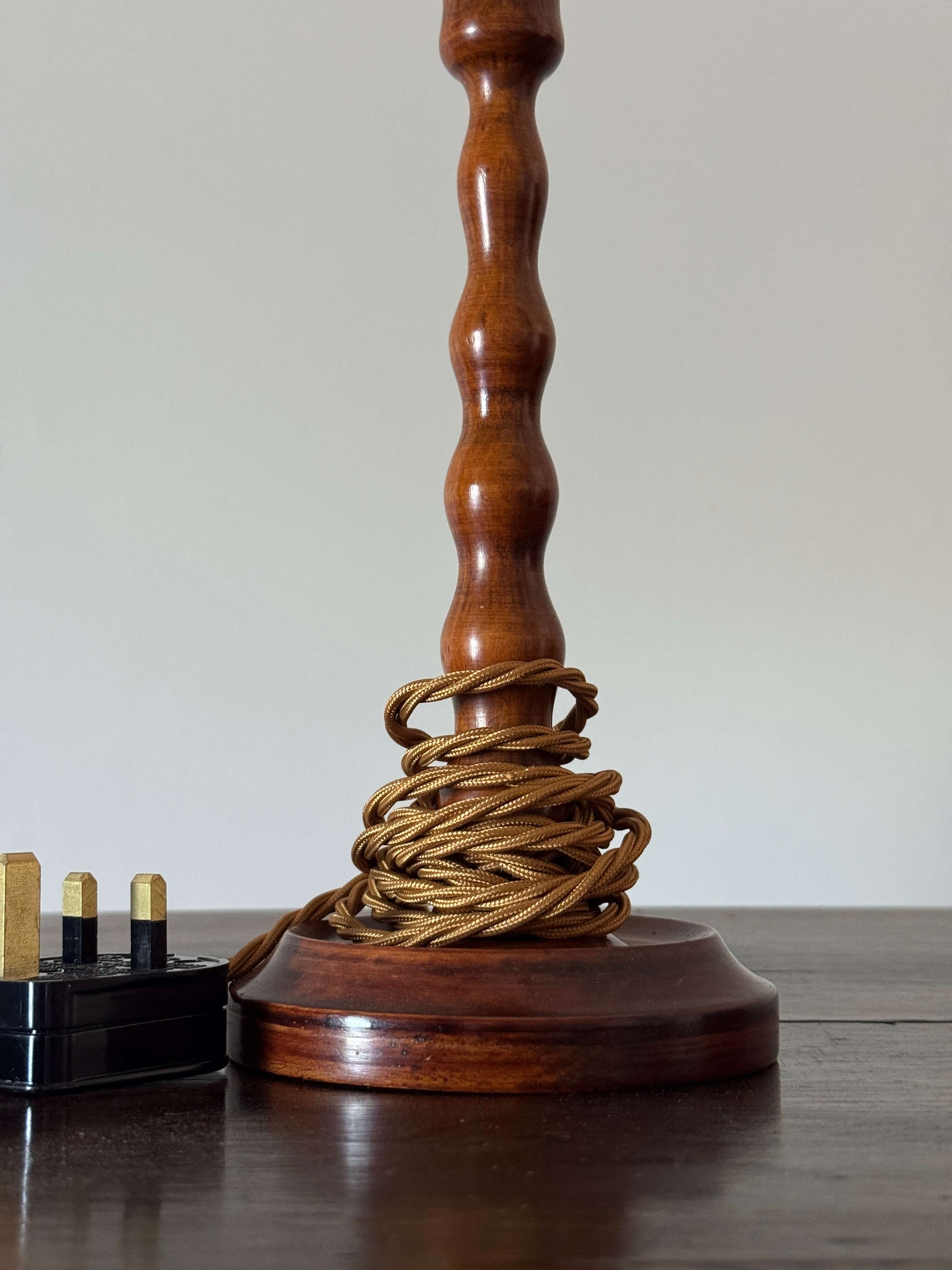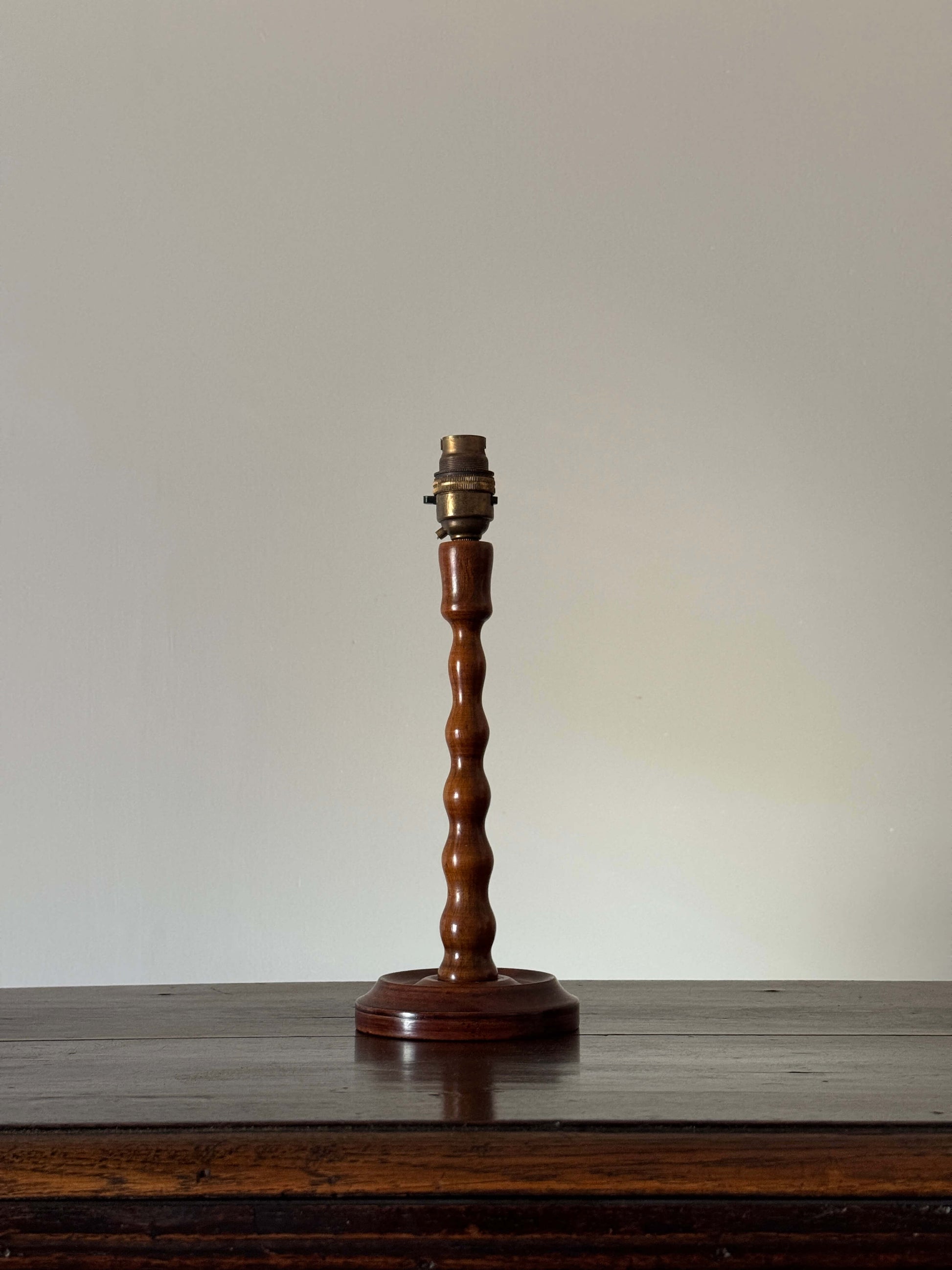 A vintage bobbin table lamp (lampshade not included). Estimated to be mid-late 1900s.